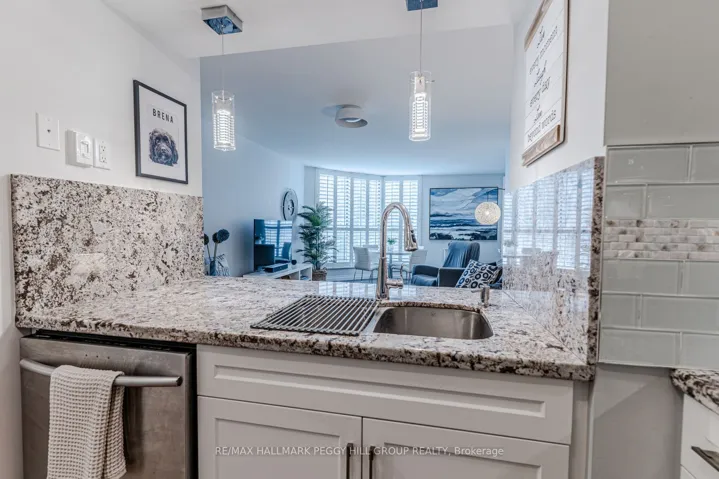 +"PublicRemarks": "STYLISHLY RENOVATED 1 BED + DEN CONDO WITH STUNNING VIEWS OF KEMPENFELT BAY, MODERN UPGRADES & PREMIUM AMENITIES! Enjoy breathtaking water views the moment you walk in at this beautifully renovated condo in the renowned Bayshore Landing, where modern comfort meets the serenity of Kempenfelt Bay and the vibrance of downtown Barrie. Natural light pours through oversized corner windows, illuminating a bright open-concept layout designed for both relaxation and entertaining. The contemporary kitchen showcases sleek cabinetry, built-in appliances, and custom pull-outs, opening effortlessly into the spacious living and dining areas where expansive water views set a stunning backdrop. The inviting bedroom features a custom closet by Closets by Design, while the versatile den provides an ideal spot for a home office or reading nook. A stylishly updated 4-piece bathroom boasts refined finishes, premium fixtures, and a Toto toilet, with a convenient laundry room featuring a full-size washer and dryer. Every corner exudes thoughtful design with smooth ceilings, freshly painted walls, upgraded lighting with dimmers, modern doors and hardware, California shutters, and custom built-ins that add function and flair. Step beyond your suite to enjoy resort-style amenities, including concierge and security, an indoor pool, sauna, fitness and games rooms, party and recreation spaces, and an on-site car wash. Perfectly positioned in the heart of the City Centre, this residence places you just steps from vibrant restaurants, cafes, boutiques, event spaces, beaches, and lakeside trails - offering the best of city living with the serenity of Kempenfelt Bay right outside your window. With a desirable first-level parking space and a spacious private storage locker, this exceptional #Home To Stay combines everyday luxury with the ease of low-maintenance living near Barrie's sparkling waterfront."