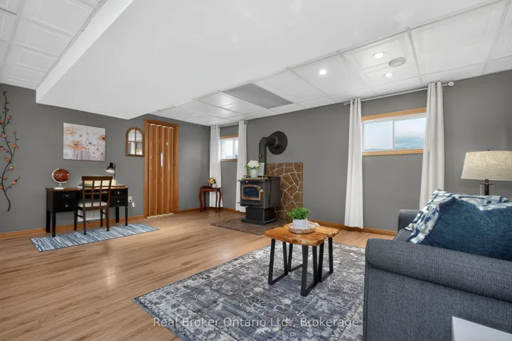 +"PublicRemarks": "With approximately 2000sq ft of living space on a large fully fenced lot and nestled among the trees you will love the peaceful secluded atmosphere this home offers, situated close to Farlain Lake. The main floor boasts a large open concept living space filled with light, has 3 generously sized bedrooms, a large updated kitchen with quartz counters and dedicated dining area, and a large 4 season sitting room/sunroom with patio door that walks out to a sizable main deck overlooking the sprawling landscaped backyard. There's plenty of space for kids, pets, and outdoor activities. The long double-car driveway provides ample parking for all your needs. The finished basement consists of ample storage, a large rec room, additional bathroom, and a large storage area/utility space that can be transformed into a 4th bedroom or additional living space. With great curb appeal and a well-kept interior, this home is a must-see with pride of ownership throughout. Located just steps from the scenic walking trails of Awenda Provincial Park, OFSCA Trail System, a private boat launch and multiple marinas. This home is a dream come true for outdoor enthusiasts looking to embrace the natural beauty of the area in a stunning home that is move-in ready with all the charm and modern updates you need. Other Recent Updates Include: freshly painted walls and updated trim throughout, and a re-shingled roof (2019) for additional peace of mind."
