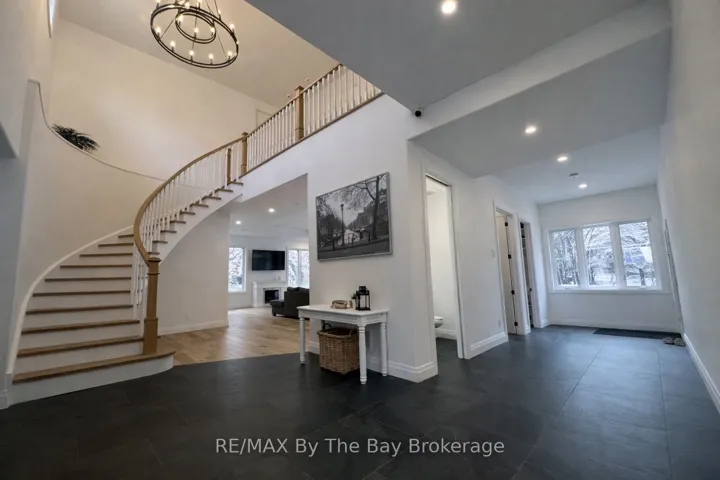 +"PublicRemarks": "Client Remarks Private Luxury Country Estate Retreat on 2.1 serene acres in Clearview Township. Where refined living meets natural serenity. Surrounded by mature trees and picturesque views of shared and private ponds, this breathtaking property offers 4,500 sq ft of exquisitely finished living space and timeless architectural charm. Located on the south side of Poplar Side Road, on the Collingwood townline and within the sought-after Nottawa public school district, the setting is both secluded and convenient.Originally built in 1900, the home has been masterfully expanded with a 3,500 sq ft custom addition. A sweeping circular oak staircase greets you in the grand foyer, while engineered white oak floors and heated Brazilian slate tile add warmth and elegance throughout. Large casement windows bring in natural light and capture stunning views of the grounds.The custom kitchen (2025) features quartz waterfall countertops, Cafe appliances, a farmhouse sink, custom hood, and a walk-in pantry with a second sink, dishwasher, and ample storage. With four bedrooms and four bathrooms including two private ensuitesthe home is perfectly suited for both family living and entertaining. The primary suite offers a spa-like bath, walk-in closet, and private covered terrace with tinted glass railing, Additional highlights include: Four-season sunroom with heat and A/C Sound-insulated office with private entrance and porch Third-floor observatory with panoramic windows. Second-floor bonus room off of the large living area has wet bar rough-in and deicated circuts for bar fridge and ice machine to easily turn into the ultimate entertainment room. In-floor heating in foyer, baths, Oversized 3-bay garage with EV outlet and heater rough-in Smart lighting, 16-camera security, spray foam insulation, New well (2021) and septic (2024) Hardie board and stone exterior with soffit lighting. An exceptional country estate where craftsmanship, comfort, and natural beauty come together"
