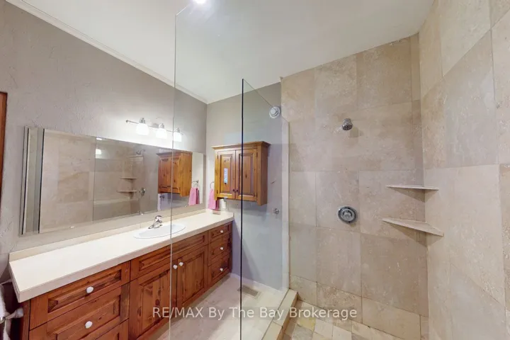 +"PublicRemarks": "Welcome to your luxurious country retreat in the prestigious Silver Birch Beach area near Thunder Beach. This stunning 2-story home, custom built in 2005, boasts approximately 3000 sq.ft. of finished living space and sits on an Acre of forested land. The Home features 3 bedrooms, 3 bathrooms, and a spacious attached garage with plenty of storage and onsight parking. Step inside and be greeted by the warmth of Tamarak wood flooring and vaulted wood beam ceilings in the Great Room, complete with a cozy wood-burning fireplace. The expansive custom kitchen features cherry wood cabinetry, an eat-in center island, and stainless steel appliances. The dining area has both a side and rear walkout, excellent for BBQing on warm summer nights. The primary bedroom offers a tranquil escape with vaulted ceiling, ensuite bathroom complete with glass & tile shower, walk-in closet, and additional storage room. Downstairs, you'll find two large bedrooms, a versatile rec room, a full 4-pc bathroom, as well as a laundry/utility room. Step outside and enjoy the beauty of nature from the covered front porch, and wrap around deck, overlooking more than a half an acre of private forested rear yard. With access to the lake, sandy beach, and breathtaking sunsets just a short stroll away, this property is truly a slice of paradise. Don't miss your chance to make this dream home your own in this sought after community!"