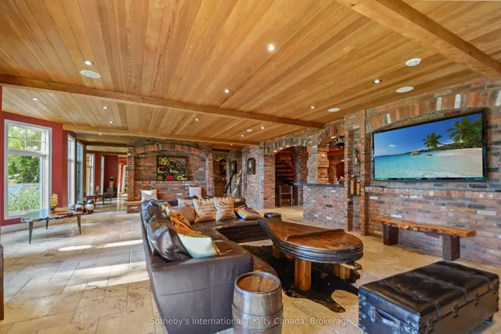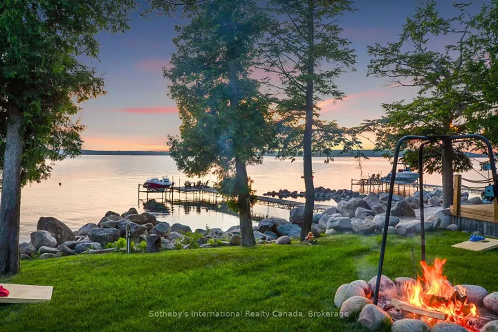 +"PublicRemarks": "Welcome to 190 Melissa Lane, a charming custom built French Inspired waterfront retreat nestled in the prestigious community of Cedar Ridge, Tiny, Ontario. This high end home is approx between 5000 -6000sqft - 6 Bdrms + 5 Bthrms (2 Bdrms + 1 Bthrm + Kitchenette in the Coach House above the heated 2 car garage). The home is situated on 153ft of west facing beach on a 2 acre lot, surrounded by majestic trees with recently renovated landscaping and outdoor lighting for added privacy and ambiance. You will fall in love with views from every room of the deep turquoise water of Georgian Bay. This home offers plenty of living space for added quests or extended family. The fully finished basement includes travertine floors, antique brick themed walls, custom bar, wine cellar, gym, sauna, bathroom/change room, large wood burning fireplace, family room and full floor to Ceiling walkouts to the lake. Radiant floor heat through out keeps this home warm and cozy during the winter months. Additional heat pumps/ac's located in the coach house and basement gym and upstairs bedrooms for added guest comfort. Embrace the lakeside Tiki Hut with 3 different grilling BBQ's, 100amp power for future hot tub and added shore power, bar sink, bar fridge, fire pit and multiple sitting areas to soak in the incredible Georgian Bay sunsets. This property offers the perfect blend of rural tranquility and modern conveniences. Explore nearby hiking trails or discover quaint shops and restaurants in Lafontaine, Penetang or Midland. Boating enthusiasts have easy access to some of the best boating/anchorages in Southern Ontario. This picturesque property, offers an unparalleled opportunity to embrace the beauty of waterfront living on Southern Georgian Bay."