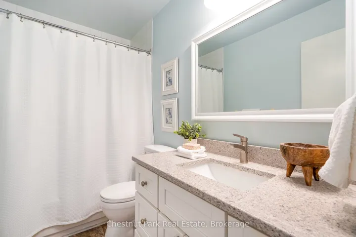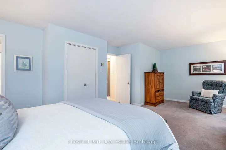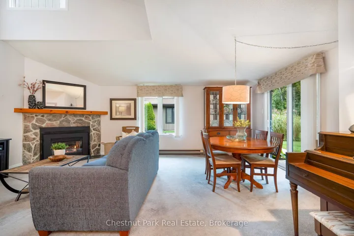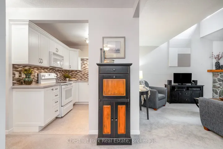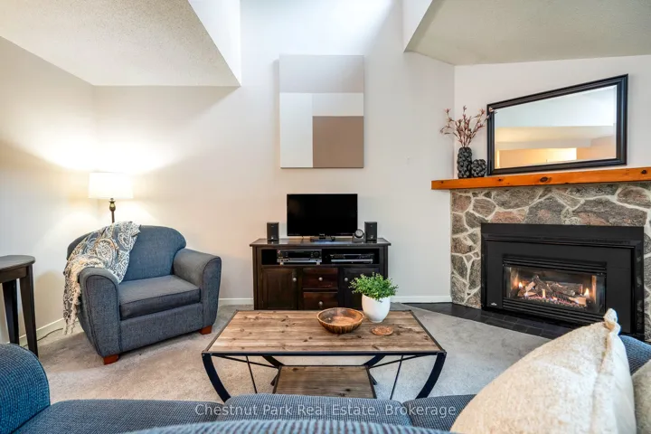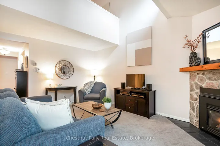 +"PublicRemarks": "Set against a peaceful forest backdrop, this updated 3-bed, 3-bath condo townhome at Whisper Woods offers refined Collingwood living. Positioned at the quiet end of the community away from Highway 26, it provides exceptional privacy and a natural setting. The bright, open main floor features a renovated kitchen, dining area, and living room with soaring vaulted ceilings and a gas fireplace. A main-floor primary suite with ensuite, along with laundry and powder room, adds to the home's thoughtful layout. Upstairs, a loft-style bedroom overlooks the living space, complemented by an additional bedroom and full bath, ideal for guests or family. Gas fireplace venting has been updated to meet current condo requirements, including a new insert offering added value and peace of mind. Enjoy a private patio with tranquil forest views. One parking space plus guest parking included. Low-maintenance living with exterior upkeep, snow removal, and lawn care handled for you. Minutes to skiing, golf, Georgian Bay, and Collingwood's shops and dining."