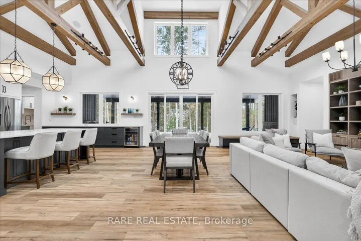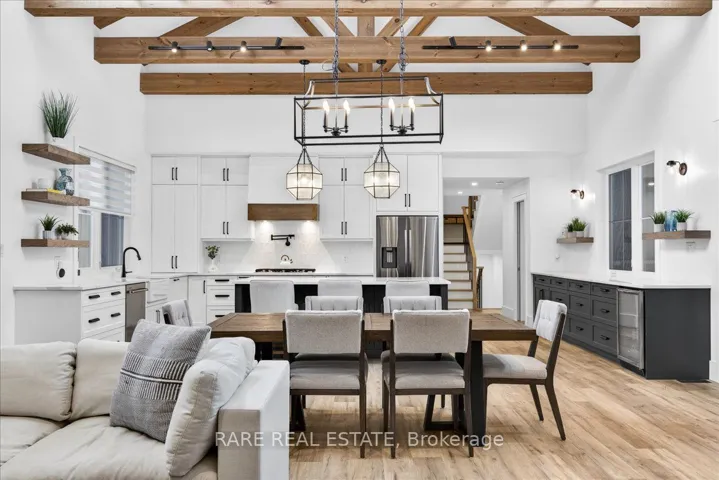 +"PublicRemarks": "Exceptional custom-built bungalow offering over 6,000sq. ft., complete with a triple car garage and an inground saltwater pool, located in the highly sought-after community of Anten Mills. Featuring 7 bedrooms and 5 bathrooms, this home is ideally suited for large or multi-generational families seeking space, privacy, and convenience just minutes from Barrie and its full range of amenities.Designed with a bright, open-concept layout, the home showcases quality craftsmanship and refined finishes throughout. The spacious primary suite offers a walkout to the backyard and a spa-inspired ensuite featuring a soaker tub and a dual walk-in glass shower with separate his-and-hers controls, delivering both luxury and functionality with a true spa-like feel. Additional bedrooms are generously sized and thoughtfully designed.The upper loft provides excellent versatility, featuring a second kitchen, living area, additional bedrooms, and a full bathroom-ideal for extended family, in-law potential, or a private home office.The fully finished basement adds approximately 2,000 sq. ft. of finished functional living space, including two bedrooms with large windows, a semi ensuite bathroom, a professional-grade gym, and a spacious recreation area with a wet bar.Outdoor living is elevated with a private backyard retreat featuring an inground pool, cabana, and a covered porch (approx. 500 sq. ft.), ideal for entertaining. The triple car garage offers ample parking, EV charging and storage.Located in a quiet, family-friendly area known for its strong community feel, with close proximity to parks, schools, and local events. Enjoy convenient access to outdoor recreation, including Snow Valley Ski Resort and Horseshoe Resort, as well as golf courses, trails, and commuter routes."