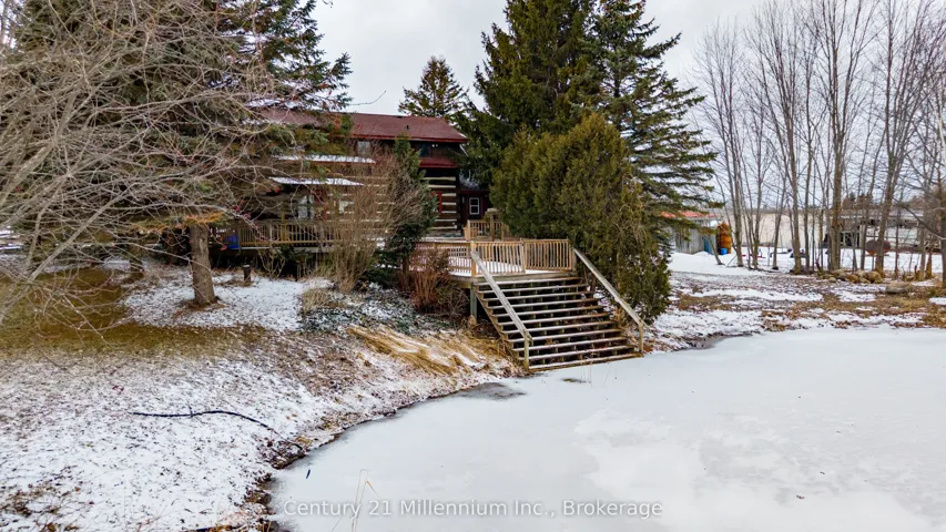 +"PublicRemarks": "Circa 1989 Log home on 50 acres with storage/shop, pond and hiking trails. Log home features a wrap around deck with a large, 2 tier deck at rear with steps down to your own pond. Pond even has its own waterfall! Main floor is bright and crisp with open concept kitchen and dining room and walkout to rear deck. Great spaces for entertaining, both inside and outside! Or just cozy up in the adjoining living room to watch your favorite tv show. Upstairs features primary bedroom with its own ensuite, plus 2 more bedrooms and second bathroom. Basement has a good-sized rec room, adjoining office which is currently being used as a guest room, and a cold room for additional food & drink storage. Detached storage shed/workshop has lots of parking and separate driveway. It was once home to a busy retail greenhouse. You can still see where the additional greenhouses were once located. It has potential to be fully finished into the workshop of your dreams. Secondary hydro runs to a hookup just behind the greenhouse area and is currently being used for the "guest hookup" for when the family come to visit. Remaining acreage is wooded with some historical walking/riding trails and opportunity for more to be created!"