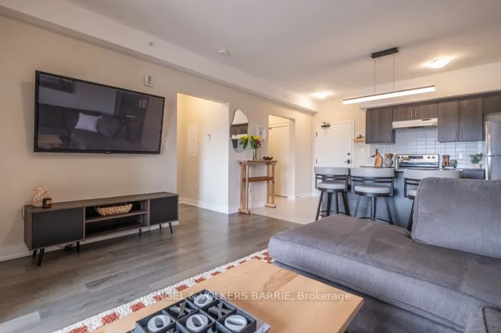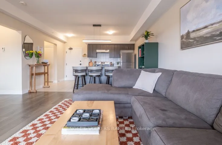 +"PublicRemarks": "Welcome to this beautifully upgraded 1 bedroom plus den condo in Barrie's sought-after south end, offering smart design, quality finishes, and everyday convenience.This well-appointed unit features an open-concept layout with upgraded cabinetry, modern finishes, and additional builder-installed kitchen lighting that enhances both function and atmosphere. The kitchen flows seamlessly into the living space, making it ideal for everyday living and entertaining.The spacious primary bedroom offers comfort and storage, while the separate den provides excellent flexibility-perfect for a home office, guest space, or creative studio. Enjoy the convenience of in-suite laundry and one owned parking space. Situated on a north-facing exposure, the unit offers consistent natural light without excessive heat, ideal for year-round comfort. The private balcony offers exceptional outdoor living space with the added bonus of a gas BBQ hook up. Residents enjoy access to excellent building amenities, including a fitness centre, shared social spaces, outdoor BBQ areas, and beautifully maintained grounds. Located minutes from shopping, restaurants, parks, Highway 400, and the Barrie South GO Station, this is an ideal opportunity for first-time buyers, professionals, downsizers, or investors.A well-cared-for condo in a growing community-move-in ready and thoughtfully upgraded."