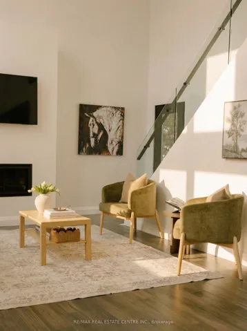 +"PublicRemarks": "There's a feeling the moment you arrive... quiet, private, surrounded by trees, and just steps from the lake. This custom built home was designed to feel different. Walk through the front doors and you are immediately struck by the scale. Soaring ceilings, walls of glass, and natural light that fills the entire space. The open concept main living area is both impressive and inviting, anchored by a fireplace and designed for real everyday living. The kitchen sits at the centre with quartz counters, a large island, and clean modern finishes that make it as functional as it is beautiful.Two bedrooms are tucked on the main level, ideal for guests, kids, or a home office. Upstairs, a glass staircase leads to a loft overlooking the main floor and a private primary retreat with a walkthrough closet and a stunning five piece ensuite with a soaker tub and glass shower. Built to last with steel construction, ICF foundation, and a metal roof. The unfinished basement offers nine foot ceilings and a rough in for a future bathroom. Set on a private 0.6 acre treed lot, this property offers space, privacy, and a lifestyle that feels removed while still being under twenty minutes to Orillia and an easy drive to the GTA. Not just a home, a place to slow down, unwind, and live differently."