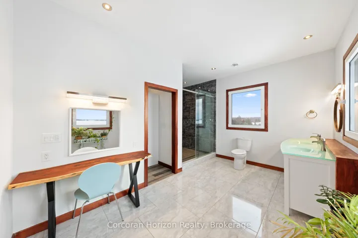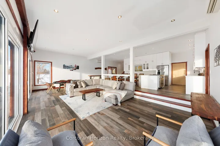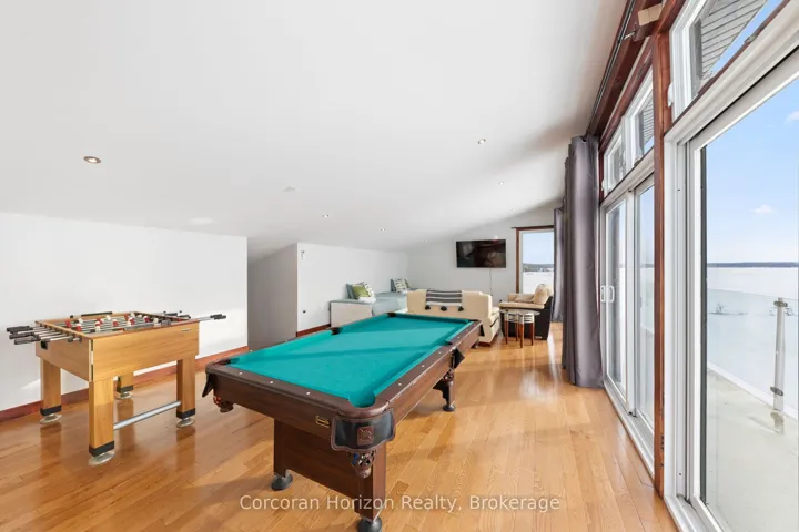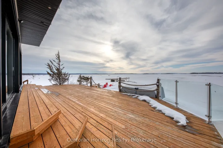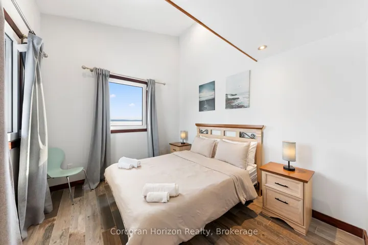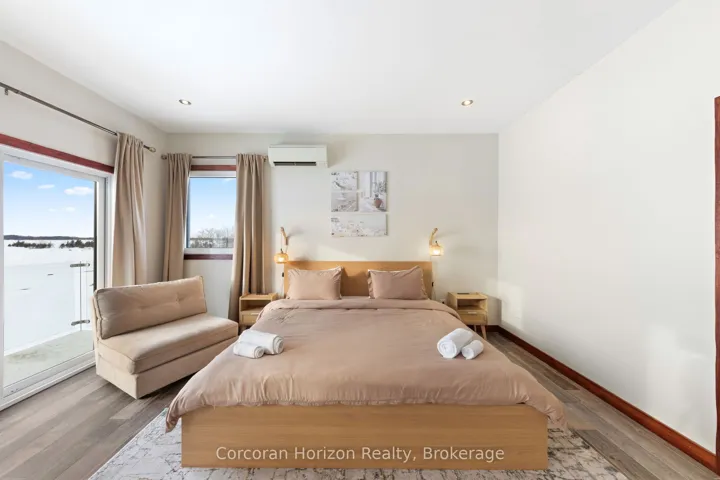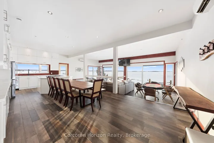 +"PublicRemarks": "An extraordinary waterfront estate on Georgian Bay! This architecturally striking 2.5-storey residence offers approximately 3,000 sq ft of refined living space on a rare private peninsula with over 500 feet of pristine shoreline. Surrounded by water, the property delivers exceptional privacy, sweeping 270-degree panoramic views, and unforgettable sunsets.The main level is designed for elevated living and entertaining, featuring a seamless open-concept layout with expansive windows that frame the natural surroundings. The gourmet kitchen is beautifully appointed with premium stainless steel appliances, an oversized island with integrated cooktop and concealed ventilation and a walk-in pantry. The sunken living room creates a dramatic yet inviting setting, perfectly positioned to capture uninterrupted water views. A private office and elegant powder room complete the main floor. Upstairs, the second level offers a serene primary retreat and a walk-through closet with custom built-ins. Two additional spacious bedrooms feature unique loft areas, complemented by a stylish 4-piece bath and a dedicated laundry room.The third floor presents a versatile space with hardwood flooring and walkout to a private balcony which offers elevated views over the bay. It's perfectly suited as a lounge, studio, or additional living area. Outdoors, enjoy a natural sandy beach, private boat launch, and endless waterfront recreation. The peninsula setting creates a truly rare and immersive Georgian Bay lifestyle. A heated and insulated garage. Some trim work remains, offering the opportunity to personalize final finishes. Located just 90 minutes from the GTA, this is a rare offering combining luxury, privacy, and exceptional waterfront living."
