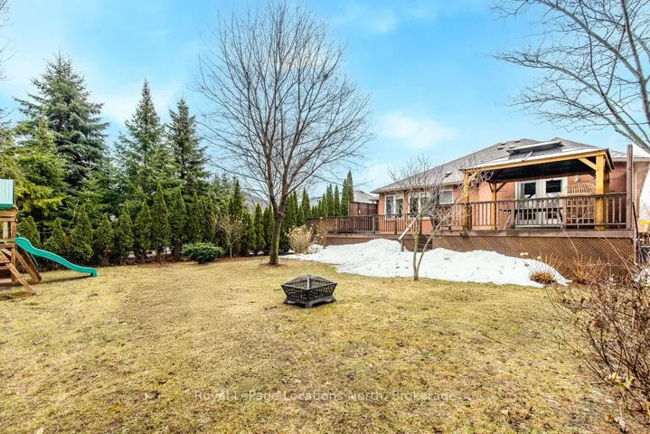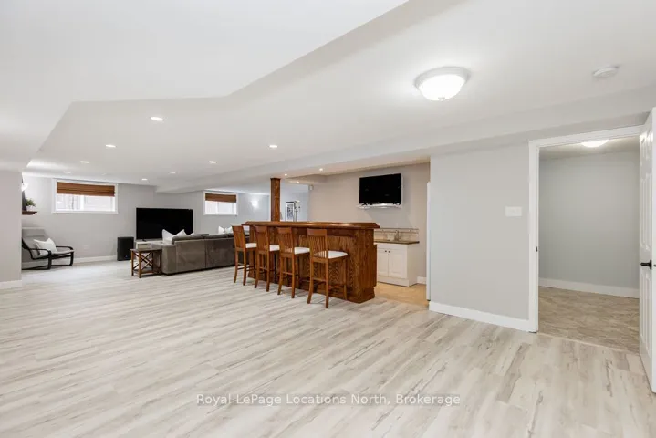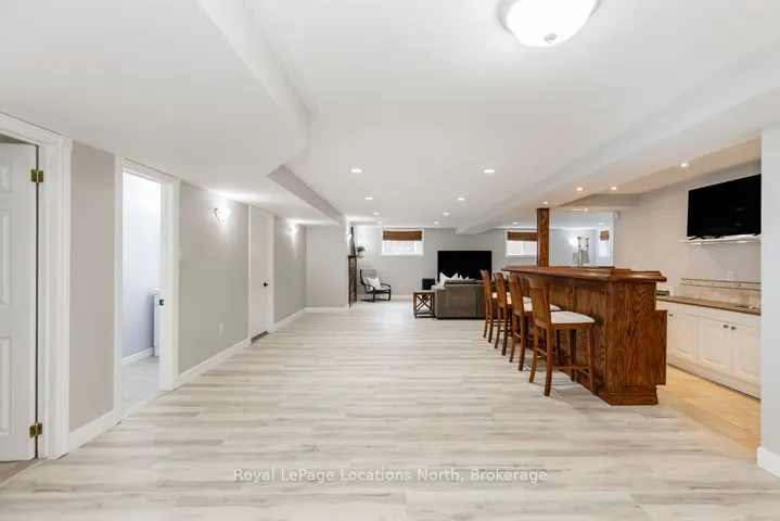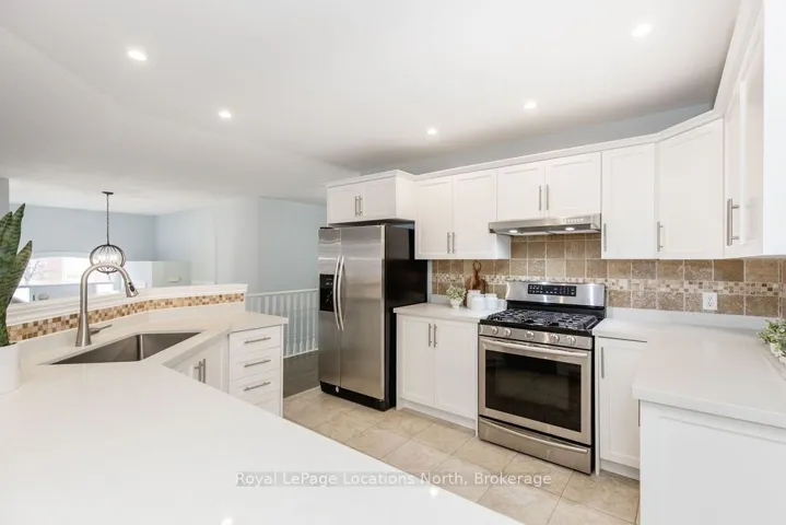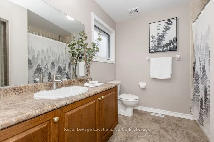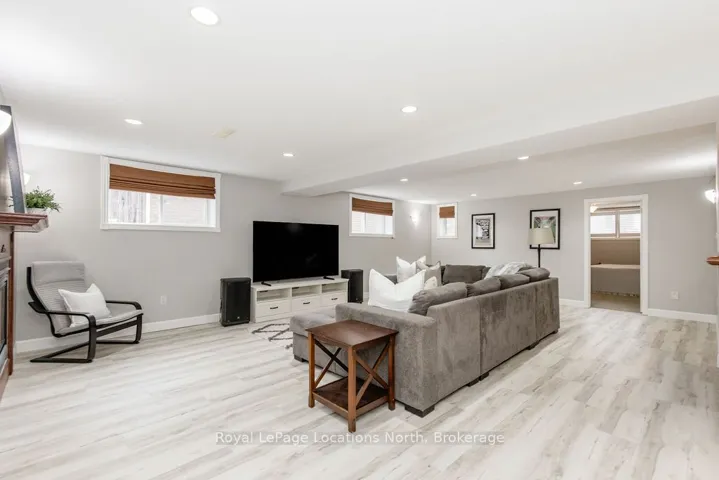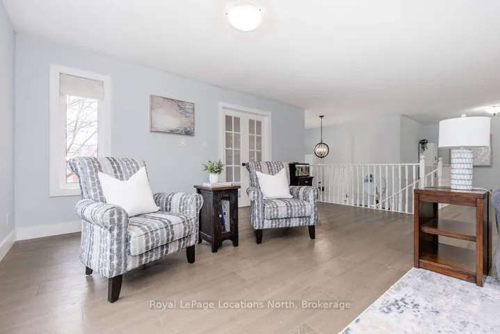 +"PublicRemarks": "Set on a beautifully mature lot, this property offers a private, fully fenced backyard surrounded by trees, creating the kind of quiet, tucked-away outdoor space that's perfect for kids, pets, and summer evenings on the deck. As you walk into the home, you're welcomed by a spacious foyer with convenient inside entry from the garage, leading into a bright, open-concept main floor. Large windows fill the space with natural light, highlighting the updated flooring and creating an easy flow between the living, dining, and kitchen areas. The kitchen offers great counter space perfect for cooking, with access to the 45 ft back deck spanning the back of the house, perfect for entertaining and barbequing. An additional room on the main floor with French doors offers flexibility as a dining room, office, or playroom.The main level offers 3 bedrooms, including a generous primary suite with a walk-in closet, private ensuite, and its own walkout to the deck. Updated finishes throughout, including new carpet in the bedrooms and stairs, add to the move-in-ready feel. With a total of 3 bathrooms, the layout is designed to comfortably accommodate family living. Downstairs, the fully finished basement offers incredible additional space, including two more bedrooms, a separate office, and a large recreation area with room for a pool table. A wet bar and gas fireplace make this the perfect setup for entertaining or hosting guests, while still offering plenty of functional living space for a growing family. Additional highlights include gas fireplaces on both levels, new front doors, interlock driveway and walkway, central air, central vacuum, owned hot water tank, water softener. Walk to school, walking trails, shopping and beach. Short drive to Collingwood."