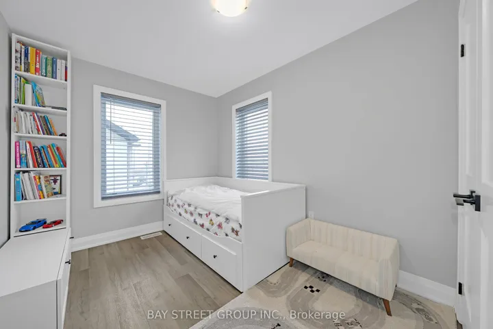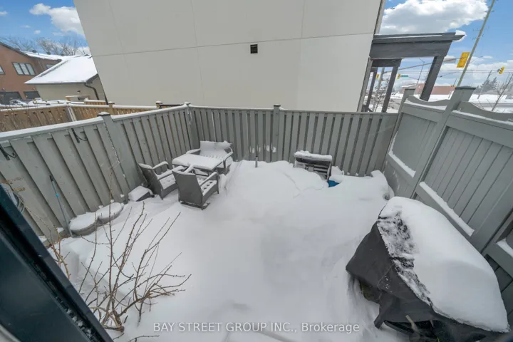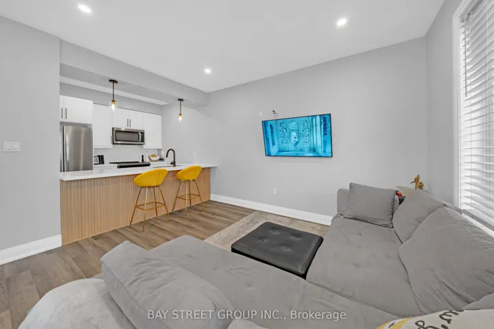 +"PublicRemarks": "5-year-old executive end-unit townhome with 3 bdrm and 4 baths. Finished basement. Central Barrie location, close to top-rated schools, Georgian Mall, recreation centre, shopping, restaurants, and transit. Quality-built home with open-concept layout and 9-ft ceilings on the main floor. Kitchen features upgraded cabinetry, quartz countertops, backsplash, stainless steel appliances, and large centre island. Walkout to private interlocked backyard. Triple-pane windows, hardwood staircase, and upgraded light fixtures. Second floor offers three bedrooms, two bathrooms, and upper-floor laundry. Primary bedroom with walk-in closet, ensuite, and custom built-in wall unit with desk and storage drawers.Finished basement with a large recreation room and a 3-piece bathroom. Well-maintained home in a family-friendly neighbourhood. Pride of ownership. Shows like new. Move-in ready home in a convenient Barrie location close to schools, parks, shopping, and everyday amenities. Freehold townhome with POTL fee covering snow removal and common elements maintenance."