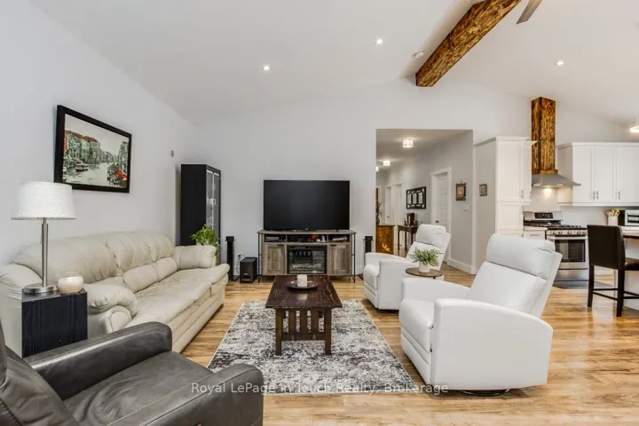 +"PublicRemarks": "JUST A SHORT STROLL TO THE SPECTACULAR PRIVATE MEMBERS ONLY GRANDVIEW BEACH! Remember the days when the kids would spend every waking moment outside? Hiking, biking, hockey on the streets. Well this is that kind of neighbourhood! Cottage Country Living with modern comforts like natural gas, municipal water & high-speed internet. Enjoy outdoor living on this double lot on a quiet dead-end road. Built just 5 years ago this beautifully designed raised bungalow delivers modern style & timeless curb appeal. The open-concept design welcomes you home where a vaulted ceiling creates a bright and inviting atmosphere. The kitchen has a generous island which offers a thoughtful blend of comfort & style. Walk out from the kitchen to enjoy the day on your expansive wrap-around covered verandah perfect for morning coffee, bbq's & summer get-togethers. There are 9' ceilings throughout with 3 bedrooms and 2 bathrooms & convenient main floor laundry. Extra features include a mudroom, large pantry, plank flooring, side covered entrance which leads to a single detached garage and Parking for 8 cars. A rear entrance steps outside to your private rear yard oasis backing onto greenspace. Unwind after a long day & enjoy your own outdoor firepit for warm summer nights under the stars with your own bunkie for guests or extended family. This property is the perfect blend of tranquility, recreation & convenience. Your very own Georgian Bay Retreat is an outdoor enthusiasts dream offering endless opportunities for outdoor adventures with swimming, playground, kayaking, fishing, snowmobile routes & four-season fun. Marina's close-by. Golf, Ski, trails, Hospital, all amenities. This one checks all the boxes. Only 10 minutes to Midland, 40 to Orillia & Barrie & 90 minutes to the GTA. Don't miss out. Call for your private viewing today!!!"