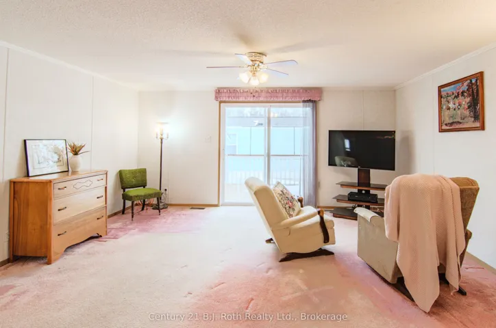 +"PublicRemarks": "Welcome to Joy Vista Estates-a peaceful, friendly, and affordable adult lifestyle community in beautiful Kawartha Lakes, just 10 minutes from Lindsay. This well-maintained home truly shows pride of ownership and offers 2 bedrooms and 2 bathrooms, thoughtfully updated throughout. Enjoy new flooring, upgraded bathrooms, and a refreshed kitchen featuring new countertops and backsplash, with convenient laundry and pantry space just off the kitchen. The spacious primary bedroom includes a walk-in closet and a 3-piece ensuite. Outside, you'll find a single-car garage, paved laneway, and a garden shed for extra storage. Recent exterior upgrades include 2021 fiberglass shingles with a 20-year transferable warranty, new siding with added 1.5" foam board for improved R-value, new exterior doors, and most windows replaced. Relax and unwind on the maintenance-free deck with a screened gazebo-perfect for enjoying the outdoors. Embrace a low-maintenance lifestyle in this vibrant community. New land lease fees to a new owner $746.76/month, covering taxes, water and testing, sewers, garbage/recycling pickup, and access to community amenities."