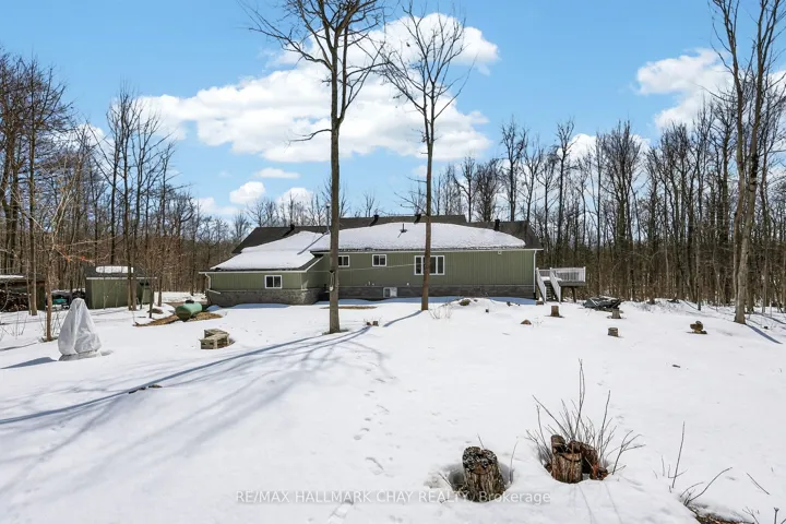 +"PublicRemarks": "Welcome to 100 Gerhardt Rd, set on just under 5 acres of beautifully treed land, just minutes from Highway 400 and Georgian Bay. Built in 2013, this custom bungalow offers over 3,200 sq/ft of refined living space, combining comfort, function, and privacy, all within 30 minutes to Barrie or Orillia. Inside, the home features a thoughtfully designed, open-concept layout. The gourmet kitchen is appointed with granite countertops, a walk-in pantry, and generous space for everyday living and hosting, with a walkout to the deck overlooking the surrounding forest, ideal for BBQing or enjoying a morning coffee. The layout flows into the dining area, then the living space, where a large window over looks the backyard and mature trees, filling the space with natural light. You may even catch glimpses of wildlife passing by. Designed for easy living, with main floor laundry and direct access to the garage. The home offers 2+1 bedrooms and a den, The second bedroom can be used as a home office or easily suited as a second bedroom. The finished walkout basement provides additional space for guests, family, or flexible use. The oversized garage features 13-foot ceilings, rough-in venting for a future wood stove and direct access to a workshop and versatile multi-purpose hobby studio. Enjoy slow mornings on the front porch or unwind in the evenings gathered around the fire, taking in the privacy and quiet of your acreage. The backyard offers space for all your family and friends to enjoy time outdoors. Close to snowmobile trails, Mount St. Louis Moonstone, and minutes to boat launches, marinas, Georgian Bay and Oak Bay Golf Club. Additional features include high-speed internet available, generator transfer switch, highly efficient propane furnace featuring wood burning capability, water treatment system, drilled well. Opportunities like this are rarely offered. A well-rounded property combining space, privacy, and year-round lifestyle in a highly accessible location."