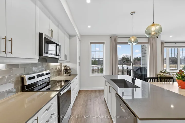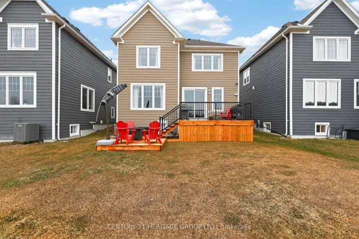 +"PublicRemarks": "Welcome to 31 Abby Drive in Wasaga Beach-an exceptional 2023-built home backing onto the fairways and pond of Georgian Sands Golf Course. Offering 3 bedrooms, 2.5 bathrooms and approximately 1,763 sq ft, this upgraded two-storey home combines modern design with peaceful west-facing views. The open-concept main floor features 9' ceilings and a bright, functional layout. The kitchen is beautifully finished with quartz countertops, undermount sink, custom tile backsplash, under-cabinet lighting, pantry, island with bar seating, and Whirlpool appliances. Walk out from the dining area to a brand new (2025) two-tier deck with natural gas BBQ hookup-perfect for entertaining or relaxing while overlooking the golf course and water. The living room offers stunning sunset views and a custom feature wall with gas fireplace, built-in shelving, and cabinetry. Upstairs, you'll find three spacious bedrooms, a full main bath, convenient laundry room, and a well-appointed primary suite with walk-in closet and private ensuite featuring double sinks, quartz counters, and a separate water closet. All bedrooms include vinyl flooring, ceiling fans, and large windows. Custom blinds and curtains are installed throughout, and the home is equipped with Bell Fiber internet. The unfinished basement offers excellent potential with large above-grade windows, bathroom rough-in, sump pump with backup power, HRV system, water softener with chlorine treatment, and 200 amp service. Additional features include a 1.5 car garage with inside entry and side door, paved driveway with parking for two, and durable exterior finishes including engineered hardboard siding and manufactured stone veneer. Monthly common element fee approx. $325. Balance of Tarion warranty included. A move-in ready home in a beautiful setting-ideal for golfers, nature lovers, or anyone seeking a newer home with premium upgrades and scenic views."