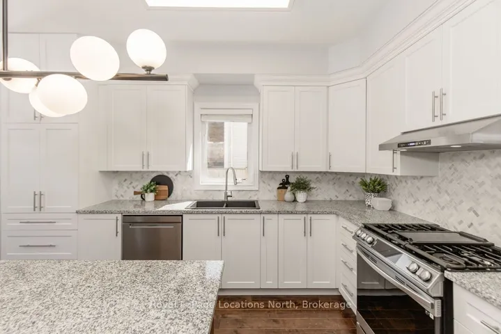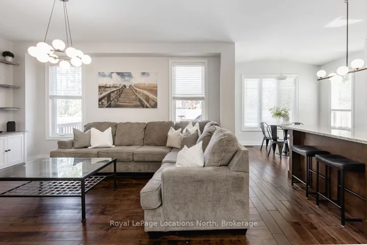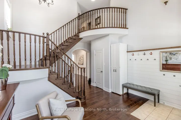 +"PublicRemarks": "Welcome to this well-maintained 4 bedroom, 5 bathroom home located on a quiet cul-de-sac in a sought-after Wasaga Beach neighbourhood, just 5 minutes to the beach and Marlwood Golf Course, walking distance to the library, and upcoming K-12 School and community hub as well as easy access to Barrie. The main floor features a grand 18-ft ceiling entry with a sitting area and staircase to the upper balcony, a formal dining room, and an open concept living room and kitchen. The kitchen offers granite countertops, updated cabinet doors, a new gas stove and hood, and a great sized island perfect for hosting with plenty of space for cooking and baking. Engineered hardwood flooring runs throughout the main level, complemented by upgraded baseboards, upgraded mouldings, and fresh paint (2022), giving the home an upscale feel. Inside entry to a double car garage and a convenient powder room complete this level.Upstairs offers 3 large bedrooms, including an oversized primary suite with walk-in closet and ensuite featuring a glass shower, double sinks, and a soaker tub. A second bedroom also includes its own ensuite and walk-in closet, plus an additional 4-piece bathroom. With spacious bedrooms and two ensuites, this is a rare find for growing families.The finished basement adds a 4th bedroom, full bathroom with walk-in shower, and the perfect cozy rec room or man cave, also ideal as a theatre room. An unfinished area with plumbing rough-in offers potential for a kitchenette or in-law suite. Major updates include furnace (2023) and A/C (2023) with transferable 10-year parts and labour warranty. Additional features include 200 amp service, wired security system, gas BBQ line, garage door openers, and a fully fenced oversized yard."