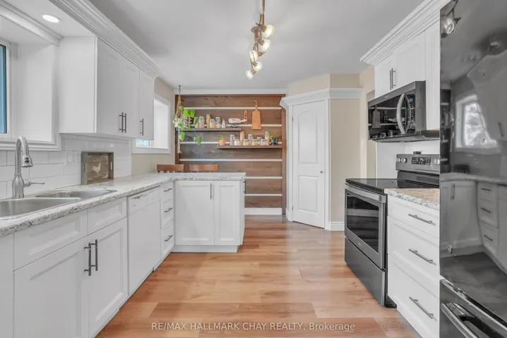 +"PublicRemarks": "Welcome to this beautifully updated raised bungalow with an in-law suite. Located in one of Penetanguishene's most sought-after, family-friendly neighbourhoods. With a bright, airy interior andaflexible layout that combines comfort and functionality, this property strikes the perfect balance betweenmodern living and small-town charm. Upstairs, you'll find three spacious, well-appointed bedrooms and acontemporary, recently upgraded bathroom, complemented by a gorgeous eat-in kitchen ideal forentertaining family and friends. The living spaces flow effortlessly with stylish laminate and tile flooringthroughout, creating a clean, cohesive feel. Downstairs offers a fully self-contained in-law suite with twoadditional bedrooms, a full bathroom, and a second kitchen perfect for extended family, guests, or rentalpotential. A cozy gas fireplace completes the space, adding warmth and comfort year-round. Step outsideand enjoy the convenience of being just a short walk to the Penetanguishene Harbour, one of the mostprotected and picturesque harbours on Georgian Bay. This is more than just a home, it's a lifestyle. Locatedin the heart of town and close to all essential amenities. Only 7 minutes to major shopping centres,9minutes to the hospital, and within easy reach of schools, parks, and waterfront trails. Whether you'reupsizing, investing, or looking for a multigenerational living solution, this property checks all the boxes."