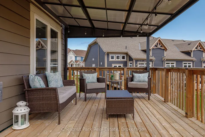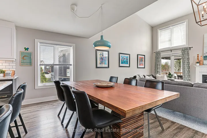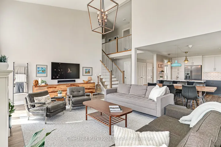 +"PublicRemarks": "Welcome to your perfect Collingwood retreat! This beautifully designed 5-bedroom end-unit townhouse offers the ideal blend of space, natural light, and unbeatable-location nestled right along the fairways of the Cranberry Golf Course and just minutes from the area's premier beaches, scenic trails, and ski clubs/resorts. Step inside to an airy open-concept layout, where floor-to-ceiling windows flood the home with sunlight and frame picturesque views of the lush green space beyond. The main floor features a generous primary suite with a private ensuite, a bright and versatile den/home office, and a functional kitchen outfitted with stainless steel appliances. The living and dining areas flow effortlessly together, creating a perfect space for both relaxed family living and stylish entertaining. Walk out to your private deck and enjoy peaceful mornings overlooking the golf course - now complete with a brand new hot tub, perfect for relaxing after a day on the slopes or trails. Upstairs, you'll find three spacious bedrooms with ample closet space and a 4-piece bath. The fully finished lower level offers even more room to relax or host guests, complete with a large recreation room, additional bedroom, full bathroom, and a bonus yoga/gym room. This home truly shines in every season. Enjoy quick access to the Georgian Trail, nearby private and public ski and golf clubs, beaches and a community recreation centre with outdoor pool. The large 2-car garage provides ample storage and parking, while visitor parking is just steps away. Whether you're seeking a luxurious weekend getaway or a full-time residence that embraces Collingwood's year-round lifestyle, this home delivers it all."