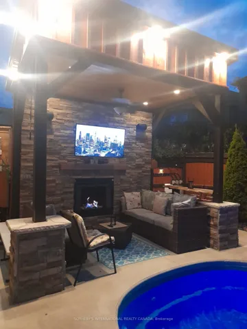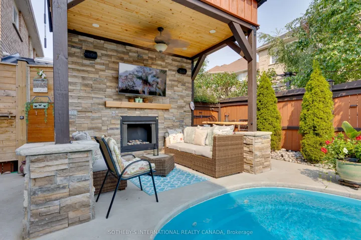 +"PublicRemarks": "Welcome to this meticulously designed residence, where refined interiors meet an extraordinary backyard oasis. The stunning inground heated salt water pool features a cascading waterfall and is complemented by an elegant cabana outfitted with a sound system, TV, and a cozy gas fireplace perfect for outdoor entertaining. An outdoor shower completes this resort-inspired retreat. Inside, the home impresses with spacious principal rooms, including two oversized bedrooms and a luxurious primary suite with a spa-like 4-piece ensuite. The chef's kitchen boasts a large island with an integrated sink, ideal for gatherings and culinary creations. Soaring ceilings in the family room enhance the sense of space, while custom iron railings add an elegant touch to the staircase. Premium finishes flow throughout with porcelain tile and rich hardwood flooring on the main level. The exterior is a masterpiece of professional landscaping, offering incredible curb appeal. A durable metal roof provides lasting peace of mind. This is a rare opportunity to own a beautifully upgraded home with a backyard sanctuary that truly elevates everyday living."