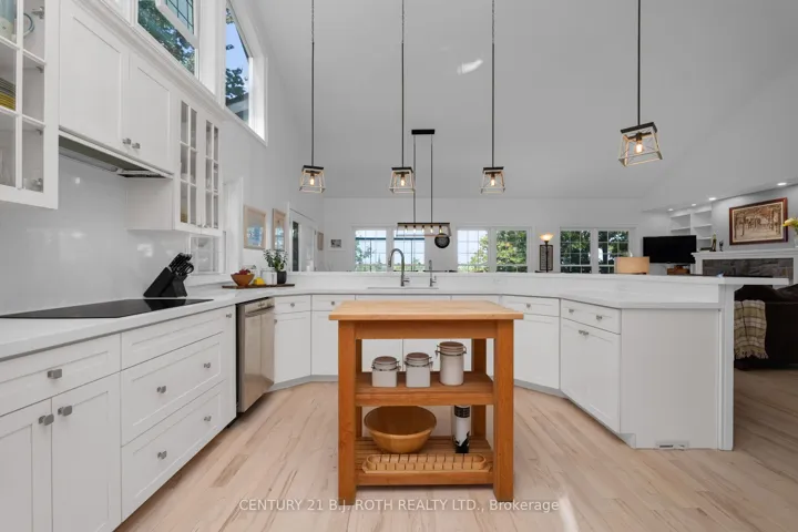 +"PublicRemarks": "Set against panoramic views of the Blue Mountains, this custom built 4 bed, 3 bath home offers a rare blend of privacy and direct access to nature, with Fort Willow Conservation Area and the Simcoe County Rail Trail right at your doorstep. The main floor features a open concept plan, kitchen with new quartz countertops, slab backsplash, walk-in pantry, and a bright breakfast area. The living room is filled with natural light and centered around a wood burning fireplace, while the dining space opens to a sunroom and deck overlooking the surrounding landscape. The primary bedroom is conveniently located on the main level, complete with a private ensuite and walkout to a built-in hot tub. Upstairs offers two additional bedrooms and a full 4 piece bathroom. The fully finished basement adds functional living space with a large rec room and second wood-burning fireplace, fourth bedroom, 3 piece bath, sauna, laundry, and a walk-up to the yard.O utside, the property features a detached double garage, pond, and fire pit area ideal for enjoying the setting year round. Located just 10 minutes from Barrie, this is a well-rounded home for those looking to combine space, comfort, and access to the outdoors."