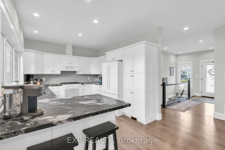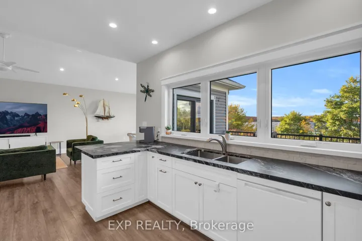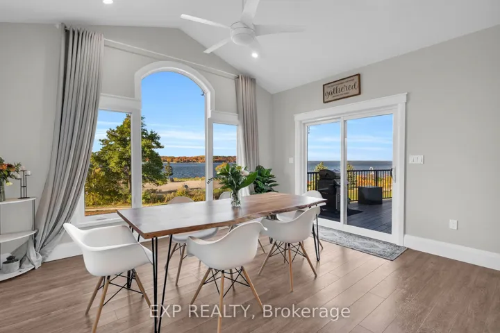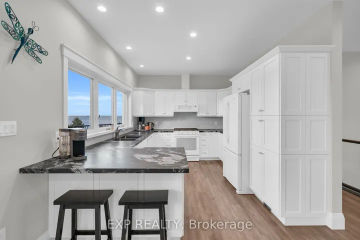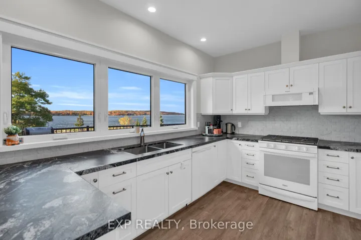 +"PublicRemarks": "Welcome to 244 Frank Street an elegant bungalow residence showcasing panoramic Georgian Bay views and refined, effortless living.Thoughtfully designed for both comfort and sophistication, this 3-bedroom, 3-bathroom home offers a seamless main-floor layout. The primary suite serves as a private retreat, complete with a walk-in closet and spa-inspired 4-piece ensuite, with heated floors, while a second main-floor bedroom is positioned for optimal privacy.The open-concept living space is beautifully appointed, featuring quality cabinetry, upgraded lighting, heated countertops, and an inviting flow for both intimate gatherings and entertaining. Main-floor laundry adds everyday convenience.The fully finished lower level extends the living experience with a spacious recreation area, second full kitchen, dedicated home office, third bedroom, full bath, and abundant storage-offering excellent potential for multi-generational living or excellent potential for an in-law suite .Additional highlights include a brand new generator and generlink, EV charger capability, and a double-car garage with epoxy flooring and dual walk-up access.Set in the sought-after waterfront community of Midland, this home offers proximity to marinas, boutique shops, dining, and year-round recreation,along with easy access to highways, trails and waterways.A rare offering where elevated finishes meet breathtaking natural beauty."