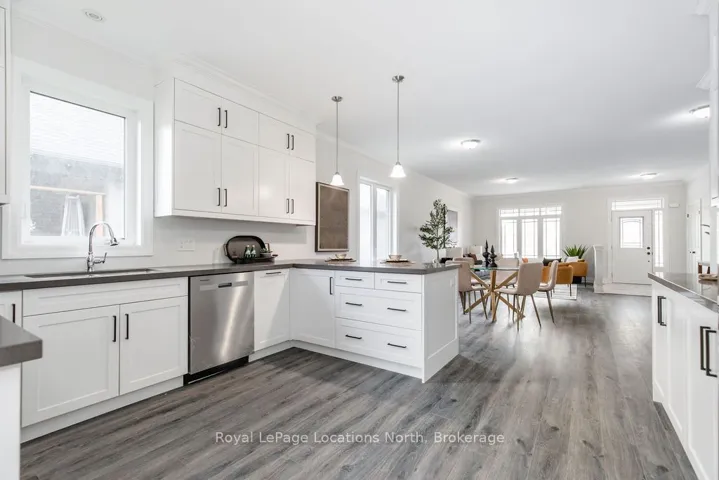 +"PublicRemarks": "This brand new all-brick raised bungalow offers over 3,200 sq ft of finished living space, combining modern design, quality finishes, and a great layout ideal for families or multi-generational living. The main level features approximately 1,645 sq ft with 9-foot ceilings, creating a bright and open atmosphere, while the fully finished lower level adds an additional 1,565 sq ft of living space.Set on a generous lot measuring 57.45 ft by 133.13 ft, this home includes 3 spacious bedrooms on the main floor and 2 additional bedrooms downstairs, along with 2 full bathrooms on the main level and a convenient powder room. A main floor laundry room is perfect for man floor living.The classic kitchen is a standout, showcasing brand new stainless steel appliances, upgraded shaker-style cabinetry, double stacked upper cabinets with crown moulding to the ceiling, deep fridge uppers, a large pantry, and practical pot and pan drawers. Quartz countertops with undermount sinks carry through the kitchen and bathrooms for a cohesive, upscale finish. The primary ensuite offers a double vanity and a glass-enclosed shower.Outside, enjoy both a covered front concrete porch and a covered rear deck, perfect for relaxing or entertaining in any season. The exterior is complete with a fully sodded yard and paved driveway, plus a spacious 2-car garage.Additional modern features include hot water on demand, central air conditioning, rough-in central vacuum, HRV system, and a cellar for extra storage.Located on the east end of Wasaga Beach near Marlwood Golf Course, this home offers easy access to Beach 1, shopping, and everyday amenities."