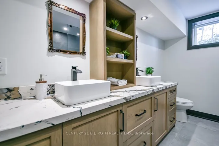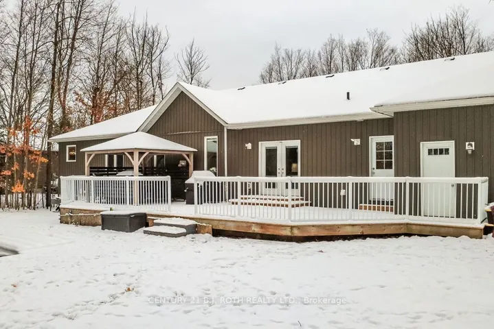 +"PublicRemarks": "Welcome to this beautiful custom-built bungalow nestled in the sought-after community of Warminster, set on a 1.15-acre treed lot offering privacy, elegance, and resort-style living. This impressive 5 bedroom, 4 bathroom home showcases over $250,000 in upgrades and a thoughtful open-concept design featuring 9-foot ceilings and an abundance of natural light throughout. The entertainment-sized kitchen is a chef's dream with granite countertops, travertine tile, breakfast bar, and stainless steel appliances including a gas range, beverage refrigerator, and dishwasher. The inviting Primary Suite offers a luxurious ensuite and tranquil views, while the main floor laundry and 2-piece powder room add convenience and functionality. Hardwood floors flow seamlessly through the main living areas, enhancing the home's warmth and character. The finished lower level is designed for entertainment and relaxation, featuring two large bedrooms, a spa-inspired bathroom with walk-in shower, a home theatre, video gaming area, and a spacious family room with custom bar area - perfect for hosting friends and family. Step outside to your private oasis: a large entertainment-sized deck overlooks the landscaped yard and a stunning 16' x 32' heated inground pool (2023), creating the ultimate backyard retreat. The attached double tandem oversized garage provides ample space for vehicles, tools, and toys. This beautiful home is also wired for generator power for added security during power outages. Ideally located near parks, soccer fields, baseball diamonds, pickleball courts, and the new Xposed Ball Hockey League Courts, this home offers the perfect balance of luxury, recreation, and community living. Experience the best of country charm and modern sophistication in this exceptional Warminster bungalow - a true entertainer's dream! UPGRADES: Waterproofing of complete basement (2023), Washer & Dryer (2024), Humidifier (2023), Buried electric fence for pets, all deck boards (2024)"
