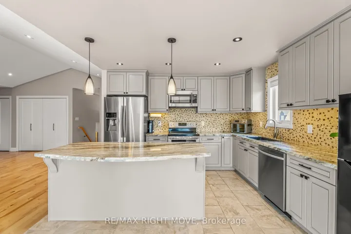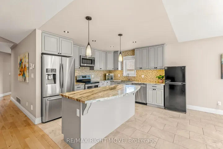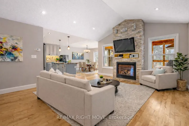 +"PublicRemarks": "Your family's next chapter might be waiting in Wasaga Beach in the sought-after Royal Beech / Blueberry Trail area - this stunning custom-built raised bungalow offers the kind of space families dream about .Built in 2017 by a custom builder, this well-maintained raised bungalow offers approximately 3,200 sq ft of finished living space with room for everyone to live comfortably under one roof.The main level features an open-concept layout with vaulted ceilings, maple hardwood flooring, and a natural gas stone fireplace-creating a warm and inviting space for everyday family life. The kitchen is thoughtfully designed with custom cabinetry, granite countertops, backsplash, soft-close drawers / cabinets , and a large island perfect for meals, homework, and entertaining. The primary bedroom includes a walk-in closet and a 4-piece ensuite with soaker tub and separate shower. Two additional bedrooms, a full bathroom, and convenient main floor laundry complete this level. Walk out to the upper deck, enclosed with a plexiglass garage-style door, offering a versatile 3-season space for relaxing or hosting.The fully finished lower level provides incredible flexibility for extended family, older children, or guests, featuring 3 additional bedrooms, a full kitchen, bathroom with dual access, separate laundry, and a bright living area with large windows and a walkout to the covered patio.Situated on a fully fenced, pie-shaped lot, this property is ideal for families with kids and pets, including a fire pit area, and inground sprinkler system for easy maintenance. Additional features include; Central air conditioning (A/C), HRV, and central vacuum, No carpet throughout, Natural gas hookups on both upper and lower outdoor spaces ,Double car garage with hot and cold water, storage and loft. Parking for up to 6 vehicles total . Located on a quiet cul-de-sac in a family-friendly neighbourhood. Walking Distance to sandy beaches of Georgian Bay , Public Schools and Shopping ."