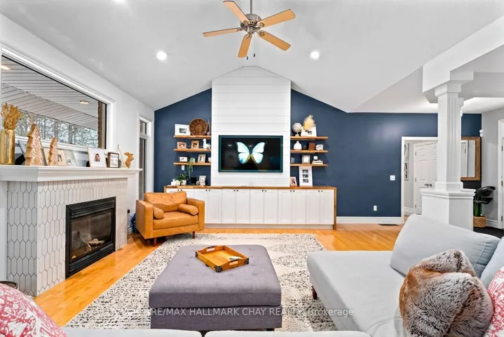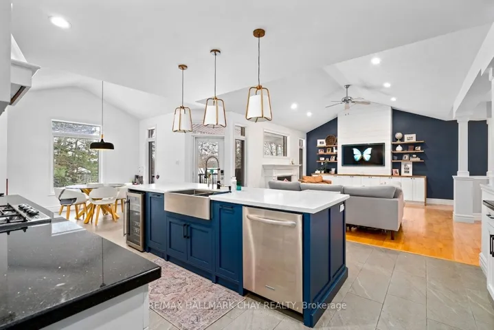 +"PublicRemarks": "Tucked into one of Midhurst's most sought-after subdivisions, this beautifully updated sprawling bungalow offers over 2,100 sq ft on the main level and nearly 4,000 sq ft of finished living space-designed for families who value space, privacy, and refined finishes. Set on a mature, treed lot and just steps to Forest Hill Public School, the location is as impressive as the home itself.Inside, soaring ceilings and a bright, open-concept layout create an inviting atmosphere. The renovated eat-in kitchen features granite countertops, a large island overlooking the living room with fireplace and vaulted ceilings and a walk out to a covered deck and private, landscaped yard with sprinkler system and gas BBQ hookup-perfect for entertaining.The main floor offers a functional mudroom, pantry, powder room, and laundry with garage access. The primary suite is a true retreat with a renovated ensuite and walk-in closet, while two additional bedrooms and an updated main bath complete the level.The finished walk-out basement with separate entrance, kitchenette, 2 additional bedrooms, and a second fireplace offers ideal in-law or multigenerational living. Extensive updates throughout make this a true turnkey opportunity."