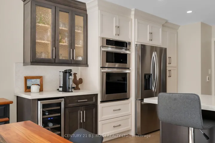 +"PublicRemarks": "A timeless blend of design and craftsmanship, this custom-built home offers over 6500 sq ft of living space and sits on a premium lot of almost 2 acres with spectacular views overlooking Georgian Bay. Upon entering the grand foyer, you are immediately greeted by a thoughtfully designed main floor featuring generously sized principal rooms, ideal for both everyday living and entertaining. The chef-inspired kitchen boasts an oversized centre island, an inviting eat-in area, ample counter and storage space, premium appliances, and a butler's pantry that seamlessly flows into the formal dining room for large family gatherings. The living room is the showstopper of the main floor with its 19-foot ceiling and floor-to-ceiling windows, which offer views overlooking the inground 100,000 liter saltwater pool. Upstairs, the expansive primary suite overlooks the mature backyard and includes a cozy gas fireplace, his-and-her walk-in closet, and a spa-inspired ensuite. Three additional well-appointed bedrooms, each with ample closet space and two of them with spa-like ensuites, ensuring comfort and privacy for every family member. The upstairs also boasts a lounge area, ideal for unwinding after a long day. The finished basement, with a separate entrance, includes a theatre room, 2 & 3 pc washrooms, and plenty of recreation space for the growing family. The recreation room has a wall of glass doors that open to the expansive, private backyard, which features endless possibilities for outdoor living. 6 garages, 2 attached,4 separate with 2 lifts, 4 fireplaces,1.5 year old furnaces (2) and a/c units (2), roof is 6 years old with 235km shingles for windstorms, in-floor basement heating. This home has it all"