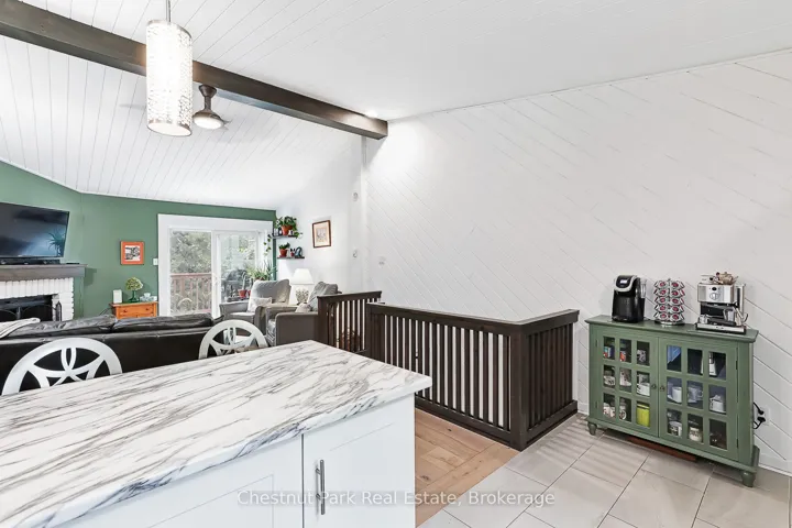 +"PublicRemarks": "This beautifully updated two-bedroom, two-bathroom condominium offers an exceptional lifestyle just minutes from local beaches, scenic hiking trails, Blue Mountain, and downtown Collingwood. Thoughtfully designed with a reverse floor plan, the home features a spacious primary suite with a private four-piece ensuite, while a second bedroom and full bathroom are conveniently located on the main level. Upstairs, the bright and airy open-concept living space is the true centerpiece-showcasing soaring cathedral ceilings, a cozy wood-burning fireplace, and seamless access to a large private deck, perfect for entertaining or relaxing. Fully renovated from top to bottom, the unit is finished with engineered hardwood flooring throughout, along with beautifully updated bathrooms and a modern kitchen offering generous cupboard space. A property that truly must be seen to be appreciated."