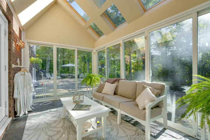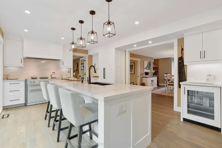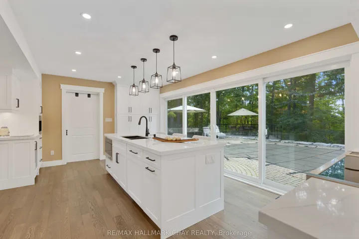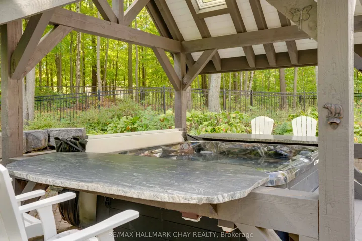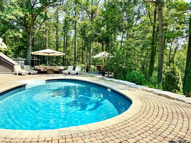 +"PublicRemarks": "Discover timeless elegance in this stunning English Tudor estate, perched on a private 2.2 acre lot inprestigious Midhurst. Thoughtfully positioned atop a hill, this 5-bedroom, 5-bathroom residence offers over5,000 sq ft of luxurious living space with sweeping views from every window and unmatched privacy atevery turn.Step into the heart of the home - a brand new chef's kitchen that seamlessly blends high designwith premium function. Featuring top-of-the-line Jenn Air built-ins, a striking AGA Mercury range, Cambriaquartz counters, and an oversized island perfect for hosting, all flowing into a sunlit dining area and awalkout to the poolside patio.Entertain in every season with a spacious living room, complete with gasfireplace and walkouts to a heated glass sunroom, or retreat to the gracious formal dining room with woodburning fireplace. The welcoming foyer features heated floors, a 2-piece bath, and walk-in coatcloset.Upstairs, the primary suite offers a peaceful escape with heated floors, two large closets, and a spastyle ensuite. A unique bedroom-loft combo with separate entrance, gas stove, and full bath makes for anideal in-law suite or guest retreat.Outside is where the lifestyle truly shines: in-ground saltwater pool, hottub under a gazebo, outdoor shower, firepit, and even a cantilevered deck overlooking the ravine. Theheated 3-car garage is a dream workshop or man cave, while a separate detached heated outbuilding offersadditional flexibility.Ask for the full list of upgrades and features - this home offers far more than meets theeye."