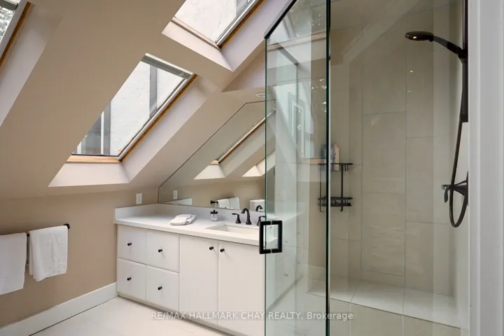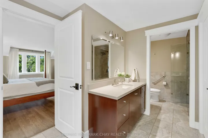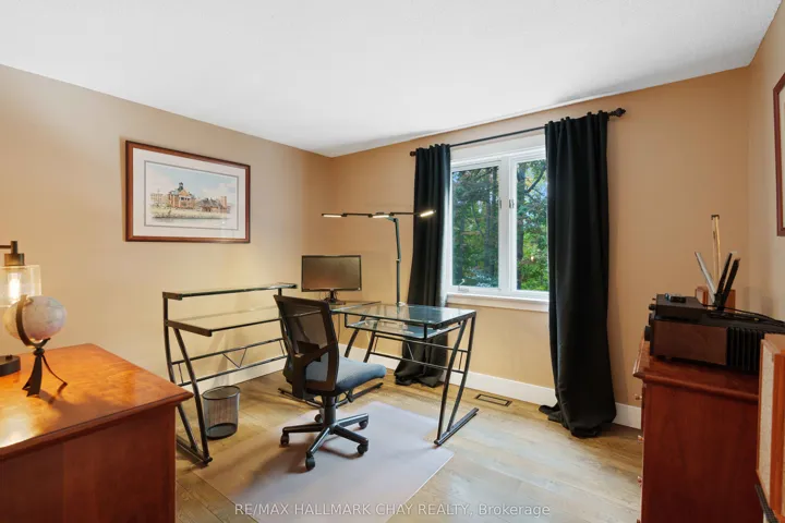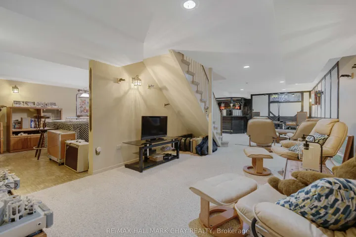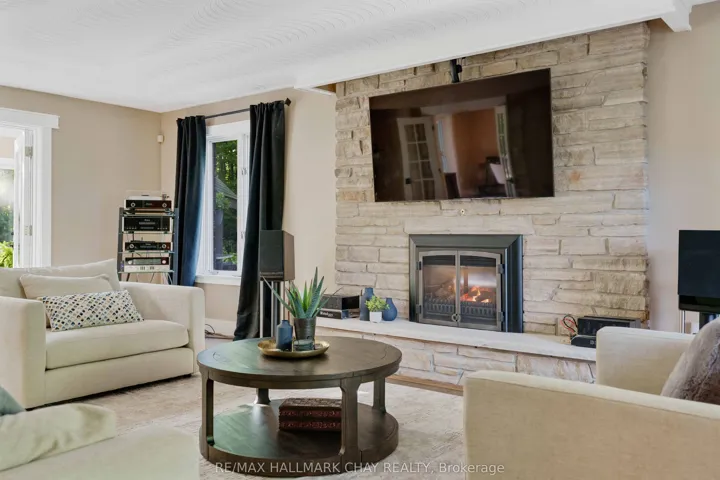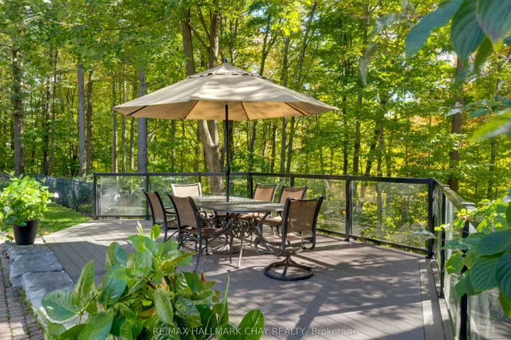 +"PublicRemarks": "Set on a half-acre lot with municipal water and sewer, this home is where modern living meets natural beauty. At the heart of the home is a beautiful kitchen featuring a large center island with sink, a second sink for convenience, and an easy flow into the family room, creating a space that feels both social and serene. Step through the patio doors and onto a huge deck - perfect for morning coffee, evening dinners, or simply enjoying the peaceful backdrop of the surrounding trees. The main-floor primary bedroom includes a 4-piece ensuite, walk-in closet, and a private balcony with serene treed views. Upstairs, two bedrooms with soaring ceilings and ceiling fans offer space for everyone, while the loft-bright and versatile-can become a home office, reading nook, or creative retreat. Second floor in addition features a 4-piece bath, second-floor laundry room. 34 Pot lights, 200 Amp electrical service. Exterior features include a metal roof, two large decks, and a driveway for up to 10 vehicles and the perfect lot for a Workshop and or Garage. Fantastic location near boat launches, beaches, and quick Hwy 11 access. A beautiful home that offers style, space, and privacy - all in one. Appliance package is negotiable. Rooms Digitally staged."