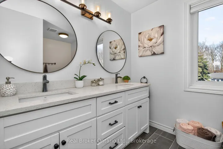 +"PublicRemarks": "Experience modern elegance at 22 Highlands Crescent, ideally located within Georgian Meadows - one of Collingwood's most sought-after neighbourhoods. Mature neighbourhood, surrounded by lush greenery. From the moment you arrive, the spacious and thoughtfully designed layout is sure to impress. Loaded with recent upgrades! The open-concept main floor is designed for effortless living, featuring a spacious powder room, convenient garage access, and an upgraded kitchen - boasting sleek new cabinets and a contemporary backsplash. The space flows naturally into the dining area, where a new sliding door opens to an expansive back deck. The homeowners have invested in professionally landscaped gardens and freshly planted trees - welcome to your backyard sanctuary space! The upper level is home to 3 bedrooms including a sprawling primary suite with double closets and a renovated, state-of-the-art ensuite bathroom featuring LED mirrors, a lavish soaker tub, and walk-in shower. The 3 piece, guest bathroom also has modern updates including a new walk in shower and vanity. Fully finished lower level, with a versatile recreation room, a dedicated office space or exercise nook, and a rough-in for a fourth bathroom. Plenty of storage space. Impressive curb appeal with a new front door and a freshly paved driveway framed by elegant stone masonry. This home puts you minutes from the slopes of Blue Mountain and the boutique shopping of downtown Collingwood."