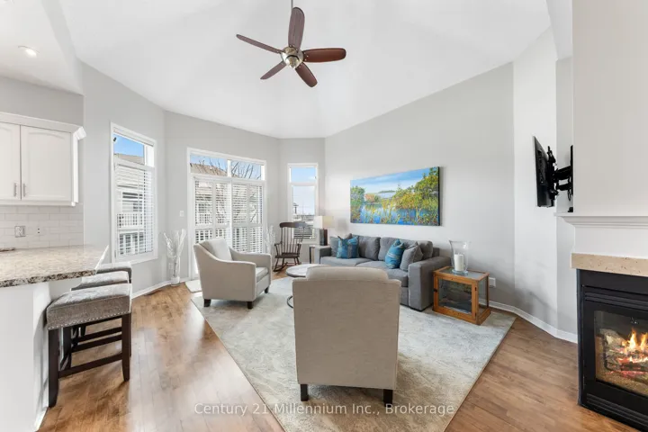 +"PublicRemarks": "Welcome to 16 Cranberry Quay, where waterfront living meets low-maintenance convenience in this beautifully updated condominium. Offering a spacious layout with three bedrooms, two full bathrooms, a single-car garage, and private parking, this home is ideal for full-time living or a weekend retreat.Pride of ownership is evident throughout, highlighted by a stunning updated kitchen featuring white cabinetry, stainless steel appliances, and a convenient breakfast bar. The open-concept living, dining, and kitchen areas are perfect for entertaining, complete with a cozy gas fireplace, large windows that flood the space with natural light, and a walkout to a private back deck.The main-level primary bedroom offers comfort and accessibility, with generous closet space and a private ensuite. The lower level provides excellent flexibility, with two additional bedrooms, a fully renovated bathroom, and a laundry area. The larger bedroom features its own gas fireplace and walkout to a private patio, making it an ideal guest suite, family room, or multi-purpose space.Enjoy being just steps from the water in the sought-after Cranberry Quay community, with easy access to trails, golf, restaurants, and shopping.. perfect for embracing an active Collingwood lifestyle."