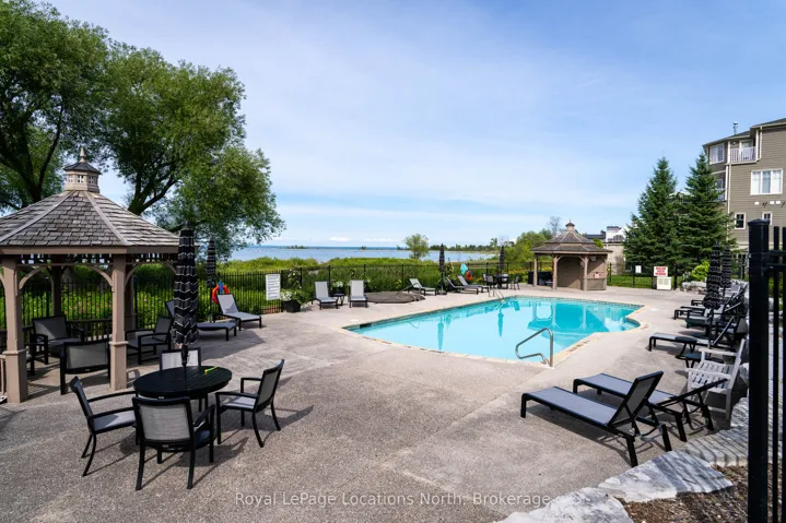 +"PublicRemarks": "Experience refined seasonal living in the heart of Southern Georgian Bay, just moments from the best of Blue Mountain and Collingwood. This beautifully appointed executive condo offers three bedrooms, three bathrooms, and stunning views of Georgian Bay, creating an exceptional spring and summer retreat for those seeking comfort, style, and effortless access to the area's renowned amenities. Thoughtfully designed for both relaxing and entertaining, the bright open-concept interior features a gourmet kitchen with high-end appliances, a spacious dining area with French doors opening to a private patio, and an elegant living room anchored by a cozy gas fireplace. Hardwood flooring adds warmth and sophistication throughout, while heated stone floors provide an added touch of luxury. The primary suite is a private sanctuary with a walk-in closet and spa-inspired 5-piece ensuite. Two additional guest bedrooms and a beautifully finished 3-piece bath offer inviting space for family and guests. Set within a desirable waterfront community, residents enjoy access to an outdoor pool, hot tub, and Adirondack chairs perfectly positioned along the shoreline to take in the bay views. The location also offers easy access to the Georgian Trail, nearby beaches, golf, hiking, cycling, and the shops, dining, patios, and seasonal festivals that make Blue Mountain and Collingwood such sought-after destinations. Whether enjoying quiet mornings on the patio, afternoons by the pool, or evenings by the waterfront, this executive rental is a rare opportunity to enjoy spring and summer in one of Ontario's premier four-season communities. Includes two underground parking spaces and a storage locker conveniently located just outside the front door. Utilities extra, damage deposit required. No pets. Available May 1st."