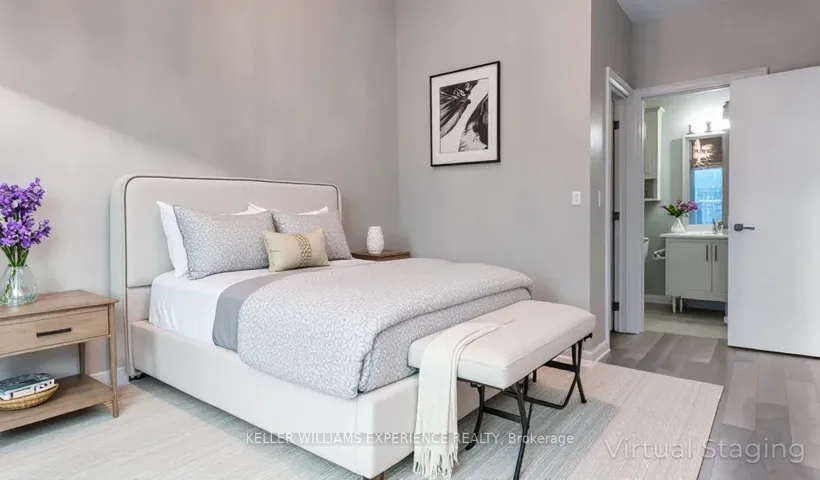 +"PublicRemarks": "Welcome to an exceptional penthouse residence in the prestigious Bellaria Tower Vaughan's only private gated community. This meticulously maintained 2-bedroom, 2-bathroom + den executive corner suite offers a rare blend of space, light, and quiet sophistication.Thoughtfully designed with approximately 1,068 sq. ft. of interior living space plus an expansive 327 sq.ft. private terrace with awning, the suite features 10-foot smooth ceilings and a seamless open-concept layout. Floor-to-ceiling windows invite abundant natural light while framing panoramic views, including distant city skyline and CN Tower vistas.The kitchen is both functional and inviting, complete with granite countertops, stainless steel appliances, and a bright eat-in area overlooking the terrace. The living and dining areas offer generous proportions, ideal for both everyday living and elegant entertaining The primary suite provides a comfortable retreat, complemented by a well-appointed ensuite. A second bedroom and versatile den offer flexibility for guests, a home office.or additional living space.Refined details throughout include upgraded lighting, custom drapery, contemporary finishes, and exceptional storage, including an oversized locker and dedicated parking.Residents enjoy access to beautifully maintained grounds with over 20 acres of landscaped parkland, walking trails, and outdoor amenities, along with indoor facilities including fitness, yoga, and sauna.A rare offering combining privacy, scale, and lifestyle-deal for the discerning tenant or buyer seeking a well-appointed residence in a sought-after community."