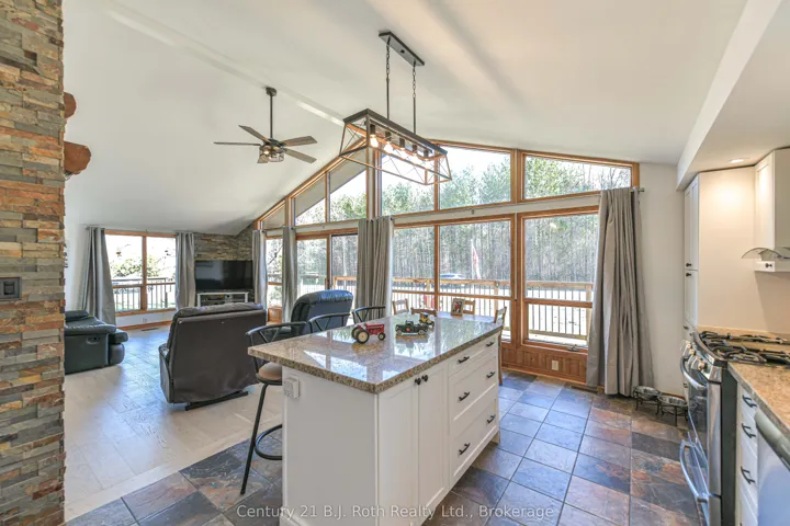 +"PublicRemarks": "This charming Viceroy chalet-style home sits on a generous 100 150 ft lot, offering the perfect blend of character, warmth, and modern touches. With its signature chalet roofline and inviting wrap-around deck, this property feels like a peaceful retreat the moment you arrive.Inside, the bright open-concept great room features a newly drywalled cathedral ceiling, updated flooring, and large windows that fill the space with natural light. A walkout leads directly to the deck, creating easy indoor-outdoor flow for morning coffee, evening BBQs, or simply enjoying the quiet surroundings.The home offers two comfortable bedrooms, including a primary with its own private walkout to the deck - a rare and lovely feature that brings nature right to your doorstep. The kitchen includes updates for a fresh, functional feel.A full unfinished basement provides additional storage or workshop space, the basement is full, unfinished with approximately 6 feet in height has plenty of potential for practical use.With updated shingles, thoughtful interior improvements, and the timeless appeal of Viceroy construction, this chalet is ideal as a year-round home, cottage alternative, or peaceful weekend escape."