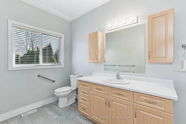 +"PublicRemarks": "Highly sought after "Kressview" bungalow in desirable Georgian Meadows! Meticulously maintained and move-in ready. This home has 1,600 square feet on the main level plus a finished basement offering approximately 3000 square feet of living space. 3 spacious bedrooms are on the main floor and one is on the lower level. Enjoy the cozy sitting area or dinette adjacent to the kitchen. Open concept living and dining area with a walk-out to a deck and concrete patio featuring a gazebo. The kitchen skylight provides abundant natural light. The primary bedroom is king-sized, featuring an ensuite bath and a walk-in closet. The bright family room has space for a billiard table. Enjoy a movie while snuggled around the gas fireplace. There is a 4th bedroom and full bath downstairs perfect for guests or teenagers. Additional features include a main floor laundry room, California shutters, hardwood floors and inside entry from the double garage. The driveway, walk-way and front porch are stamped concrete. The yard is beautifully landscaped and private. This home also includes a whole home generator. A park and the trail system are steps away. Only minutes to downtown Collingwood, Blue Mountain, golf courses and Georgian Bay!"