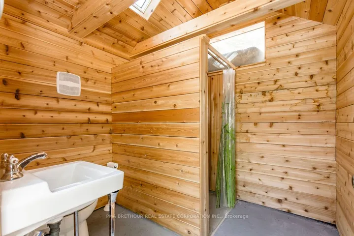 +"PublicRemarks": "Charming A-Frame Cottage Just a 9-Minute Walk from Allenwood Beach. Nestled at the end of a tranquil cul-de-sac, this delightful A-frame cottage is only a 9-minute walk from the beautiful Allenwood Beach area, offering the perfect blend of privacy, nature, and beachside relaxation. Set on a large, private lot, this property provides a peaceful retreat with easy access to one of the area's most scenic beaches.The renovated cottage features an inviting interior with natural cedar and pine finishes throughout. The cozy main floor is heated by a stunning brick fireplace with a double chimney, creating a warm ambiance for cooler evenings. For additional comfort, an electric built-in wall heater is also available. Step outside onto the back deck, where you'll find a BBQ built into the chimney, ideal for entertaining or simply enjoying a peaceful afternoon.The compact kitchen is equipped with a fridge, sink, and tabletop stove perfect for preparing simple meals in your lakeside getaway. A full bathroom with a shower is located on the second floor, along with a comfortable bedroom offering a quiet space to relax.The property also features several unique and practical outdoor amenities. To the left of the cottage, a spacious shed with power and lighting offers ample storage or could be easily transformed into a charming guest bunkhouse. On the opposite side, a cedar bathhouse, connected to both the pump house and city water supply, provides convenient access to rinse off the beach before heading inside! Whether you're looking for a perfect family escape or a prime building lot for future development, this property offers endless potential. With it's serene location, thoughtful updates, and abundant space, its an ideal retreat or investment opportunity. Don't miss out on this unique opportunity -schedule your showing today!"