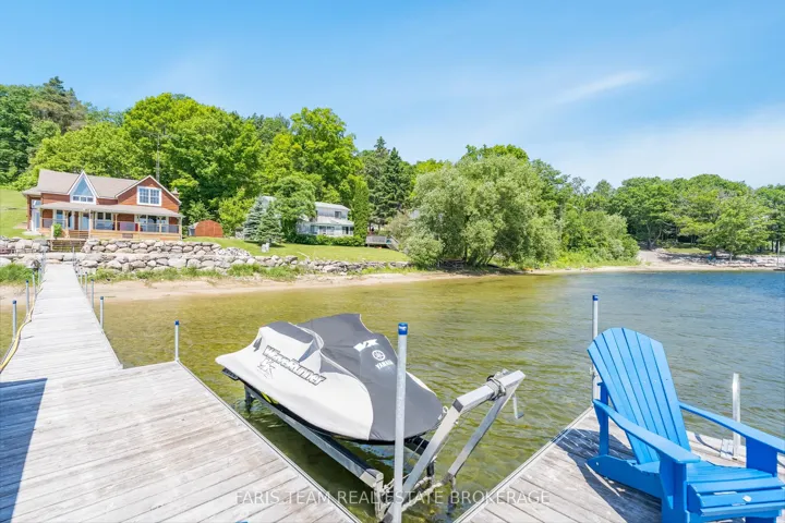 +"PublicRemarks": "Top 5 Reasons You Will Love This Home: 1) More than just a water view, this home offers a true waterfront experience where the water becomes your everyday backdrop, with every room oriented toward the sandy shoreline and sparkling Georgian Bay, creating a seamless connection to sunrises, calm afternoons, and glowing evening skies 2) The covered waterside porch serves as a natural extension of the living space, perfect for enjoying shaded midday relaxation, watching summer storms roll across the Bay, or unwinding into peaceful evenings with uninterrupted shoreline views 3) Designed for the way waterfront living is meant to be enjoyed, the property features a private dock, boat lift, and Seadoo lift, allowing for effortless days on the water, while the professionally graded shoreline flows naturally to the sandy beach for a clean, low-maintenance, and highly functional outdoor setting 4) Inside, a spacious and functional kitchen anchors the home for both everyday living and entertaining, complemented by an oversized garage with potential for additional living space above, and a bright extension with soaring ceilings offering flexibility for a guest suite, games room, or additional family area 5) Set among thoughtfully spaced neighbouring properties, the home offers a rare sense of privacy, enhanced by major updates including mechanicals, windows, doors, and deck, all while being just minutes from downtown Penetanguishene with convenient access to shops, restaurants, and essential amenities. 1,618 above grade sq.ft."