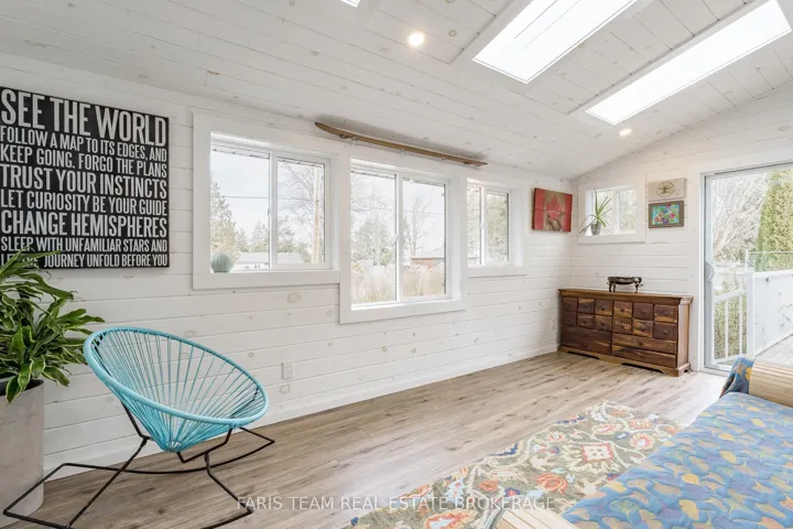 +"PublicRemarks": "Top 5 Reasons You Will Love This Home: 1) An exceptionally versatile, turn-key multi-generational property or peaceful cottage retreat featuring 3 gas fireplaces, the spacious 2-storey layout is complemented by a fully self-contained bungalow-style granny suite with a private bedroom, 3-piece bath, living room with a gas fireplace, a complete kitchen with a stove and fridge, plus access to front and rear decks, ideal for extended family, guests, a home office, or income potential, including the option to live in one unit while renting or Airbnb-ing the other to offset expenses 2) Over $135K in upgrades completed in the past 3 years, including landscaping, fresh paint throughout, a 17'x10' enclosed front sunroom/porch addition with 3 skylights, a gas fireplace, and sliding doors to an oversized front deck, an additional storage includes a 26'x16', 4'8" high, clean, bright crawl space with spray foam insulation and custom shelving 3) A large, sun-filled family room with soaring ceilings and oversized windows, plus an open concept kitchen and dining area with a gas fireplace and a newer gas stove/oven with an air fry feature, high-efficiency ductless heating and cooling systems are installed, along with an EV charger 4) Enjoy year-round outdoor living with front and rear decks, a tranquil backyard surrounded by mature evergreens, and stunning Georgian Bay sunset views, without higher waterfront taxes, steps to trails, swimming, snowmobiling, ice fishing, nearby marinas, and just 13 minutes to ski hills 5) Ideally located just 2 minutes from Highway 400 (only 30 minutes north of Barrie) and close to a new paramedic and ambulance station offering faster emergency response. 2,069 fin. sq. ft. INCOME POTENTIAL-ATTENTION FIRST TIME BUYERS OR RETIREES: Purchase price $749,900 | Min. down payment $37,495 (5%) | Mortgage $712,405 at 4% | Approximately biweekly payment $1,562.12 ($3,387.62/mo). Estimated bungalow rental income $1,700/mo. Adjusted payment approx. $1,687.62."