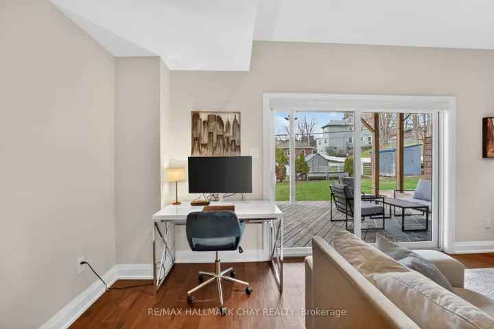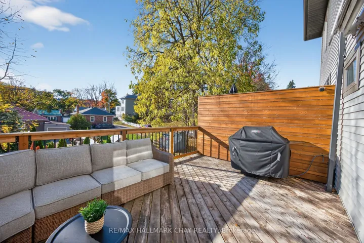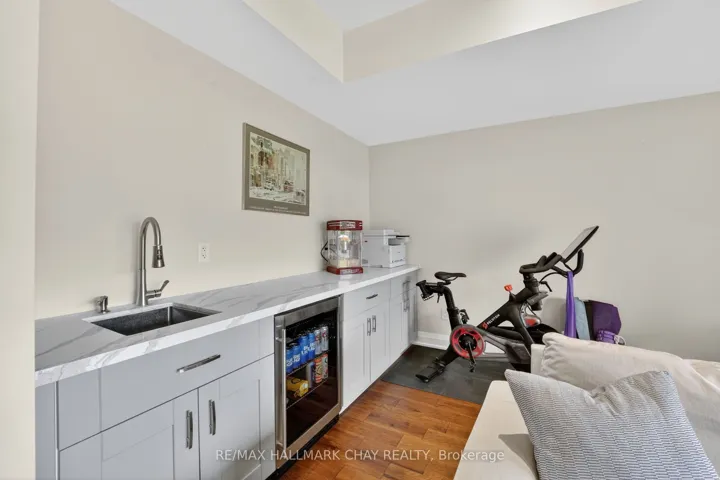 +"PublicRemarks": "Distinguished Freehold Townhome From Acclaimed Builder Daycor. Built in 2019, This Executive Residence Showcases Approximately 2,400+ Sq. Ft. Above Grade With Countless Premium Upgrades. Just A Short Walk To Barrie's Vibrant Downtown & Waterfront. Thoughtfully Designed Across Three Finished Levels, This Home Blends Modern Sophistication With Exceptional Functionality. The Open-Concept Main Level Is Defined By 9-Ft Ceilings, Rich Hardwood Flooring, Oversized Windows, Pot Lights, & Designer Lighting Throughout. At The Heart Of The Home, The Chef-Inspired Kitchen Features White Shaker Cabinetry w/Soft-Close Doors & Drawers, Quartz Countertops, A Stunning 10-Ft Custom Quartz Island, Walk-In Pantry, Double Sink & Premium Stainless Steel Appliance Package. Seamlessly Connected Living & Dining Spaces Make Entertaining Effortless, While Oversized 8-Ft Sliding Doors Lead To A Spacious Deck Overlooking The Treed Rear Yard. Upstairs, The Home Continues To Impress With Three Generously Sized Bedrooms, Including A Serene Primary Retreat, Alongside Well-Appointed Bathrooms On Every Level, Each Finished With Quartz Countertops & Upgraded Fixtures. Hardwood Flooring Continues Throughout, Complemented By Upgraded Broadloom & Underpad On Staircases For Added Comfort. The Finished Walkout Lower Level Offers A Bright & Inviting Extension Of Living Space, Complete With A Floor-To-Ceiling Napoleon Gas Fireplace With Tile Surround, A Custom Wet Bar w/Quartz Counters, Bar Fridge & An 8-Ft Sliding Door Walkout To A Second Large Deck With Motorized Blinds. A Stylish 3-Piece Bathroom w/Glass Shower, Inside Garage Entry & Abundant Storage Including Multiple Closets Enhance This Level's Versatility. Additional Features Include 9-Ft Ceilings On Main & Second Levels, Upgraded 6.5-Inch Trim, Automatic Blinds, Ceiling Fans & Custom Finishes Throughout. Dual Walkout Decks, Designer-Level Upgrades, And An Unbeatable Location Near Waterfront. Truly A Rare Home Where Luxury Meets Lifestyle."