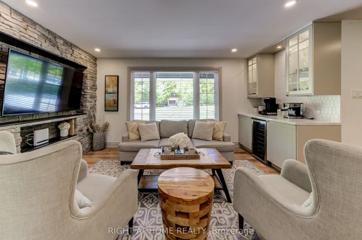 +"PublicRemarks": "Step into a lifestyle of comfort and relaxation with this stunning bungalow with a walk-out basement, just a 5 minute stroll to beautiful Lafontaine beach. Perfectly blending functionality w/ modern elegance, this thoughtfully designed 3+1 bedroom, home offers 3 main floor bdrms, two of which each feature private ensuites, offering convenience and privacy. The primary bdrm ensuite is complete with its own stacked washer & dryer for the ultimate convenience, heated floors, custom tile backsplash, wall sconces, & a bluetooth enabled speaker. At the heart of the home, an open-concept kitchen features an expansive island w/ electrical outlets containing USB ports, quartz countertops, tile backsplash, stainless steel appliances and a w/o to the deck. The living room's stone feature wall adds warmth and coziness while the custom coffee bar caters to your morning rituals. Each bedroom is enhanced w/ custom built-in wardrobes, ensuring optimal organization and storage. The inviting walk-out basement retreat is designed for comfort and wellness. The walk-out basement features custom stone feature wall with a cozy gas fireplace and a billiards table. Thoughtfully placed wall sconces provide ambient lighting, creating a relaxing and stylish atmosphere. With two convenient walk-outs to the expansive backyard, you'll enjoy easy access to the outdoors, surrounded by mature trees that offer both beauty and privacy. The spacious basement bedroom features custom built-in wardrobes and two large windows, filling the room with lots of natural light. The exercise room is outfitted with a custom tile feature wall w/ a Napolean electric fireplace equipped w Bluetooth-enabled speakers and a 2 pc washroom for added convenience. Class 4 filter bed septic system (June 2024) - permit available, roof (April 2022), water softener (2022) and much more - see attached sheet for list of upgrades. Water is included in property tax bill."
