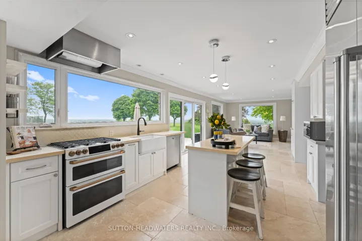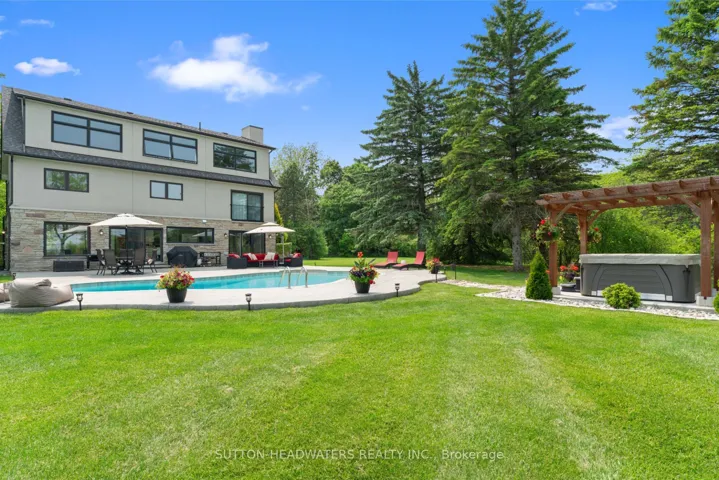 +"PublicRemarks": "Welcome to GRANDVIEW ESTATE! This is the property you've been waiting for. Discover a rare gem with jaw-dropping panoramic views that will leave you speechless! Nestled just minutes from Georgetown, Go-station, and many prestigious Golf Courses. This extraordinary estate sits on over 5 acres of breathtaking, pristine landscape. Perched atop the Niagara Escarpment, it offers unrivaled vistas of the Toronto skyline, the iconic CN Tower sparkles in the distance a sight to behold from dawn to dusk. This one-of-a-kind home, meticulously renovated with designer flair and no expense spared blends luxury with natures grandeur. The open-concept main level dazzles with a gourmet kitchen featuring a GE Cafe 6-burner gas range, Sub-Zero fridge, travertine and hardwood floors, crown molding, a stunning decorative fireplace, and pot lights. Multiple walkouts showcase 360-degree views, immersing you in the serene beauty of the surrounding conservation land. A stunning concrete freeform pool with patterned concrete patio and stand alone spa elevates outdoor enjoyment to new heights. Upstairs, four spacious bedrooms, including a recently renovated primary suite with a lavish ensuite and a private balcony overlooking paradise. The fully finished third floor is a showstopper, featuring a cozy fireplace and extraordinary, unobstructed views that elevate every moment spent in this serene retreat. The lower level impresses with a cozy recreation room, possible +2 bedrooms featuring another gorgeous fireplace, and a sleek 3-piece bathroom. Perfectly positioned near charming Glen Williams and backing onto protected conservation land, this home is a sanctuary of luxury and tranquility, where unparalleled views steal the show. 3 Gas fireplaces/on demand Generac generator/Geothermal/400 amp service."