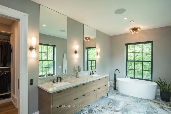 +"PublicRemarks": "Known as The Judges House, 57 Victoria Street is one of Miltons most iconic addresses set on over half an acre backing onto protected conservation land, and fully rebuilt in a two-year transformation that merges Victorian heritage architecture with modern luxury. Every inch of this 4,100+ sq ft home was redesigned with intention from the handcrafted oak staircase to the preserved oak front foyer, radiant Warmboard subflooring, and Northern Wide Plank hardwood throughout. The layout at the front of the home honours a more traditional flow, with dedicated rooms including a formal sitting room and home office, while the rear opens into a contemporary plan with expansive sightlines and integrated living spaces. The main floor is anchored by two striking Valor fireplaces one classic in tone, the other sleek and modern alongside custom millwork and conservation-approved Kolbe windows that flood the home with natural light. The kitchen is a standout, featuring Villa cabinetry, Han Stone surfaces, a hidden coffee station, and a sculptural Elica hood fan that disappears into the ceiling line. The primary suite offers double walk-in closets with display lighting, and a spa-calibre ensuite with heated floors, oversized glass shower, and a sculptural tub. Construction quality is unmatched: steel support beams, Dry Shield waterproofing, sound-insulated walls, and an energy audit confirming exceptional R-values. The home includes discreet air systems and an independently zoned lower level for complete comfort. A fully detached, 1,050 sq ft coach house includes epoxy garage floors, a custom dog wash station, and a radiant-heated studio with six skylights, floor-to-ceiling windows, and a full 3-piece bathroom. The lot is enclosed with Iron Eagle fencing, features a 31-zone irrigation system, and is pre-wired for a future electric gate. A once-in-a-generation blend of legacy, location, and lasting quality."