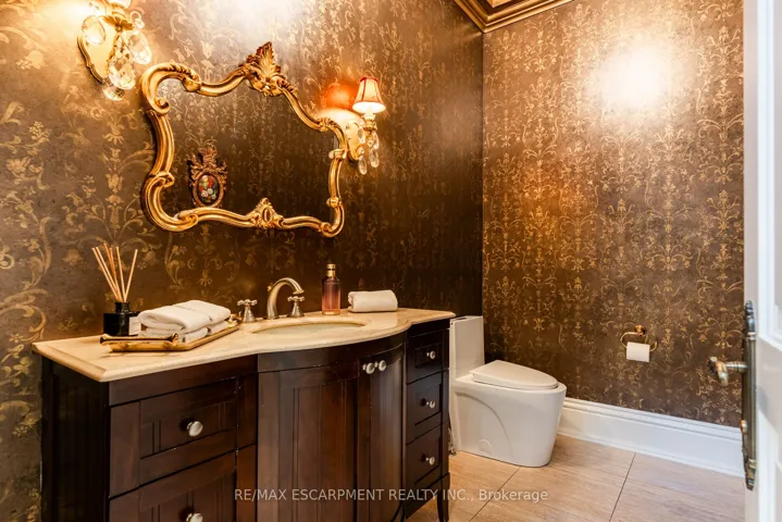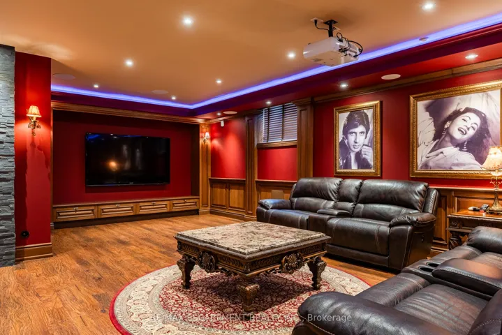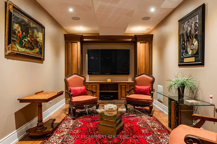 +"PublicRemarks": "Impeccably nestled in The Bluffs, this extraordinary estate spans over 11,000 sqft. of luxurious living space on approx two acres of treed property. Blending modern sophistication with traditional elegance, this home offers an unparalleled lifestyle in a breathtaking setting. From the moment you step into the grand foyer, the impeccable craftsmanship and seamless flow set the tone for refined living. Architectural excellence is showcased through soaring coffered ceilings, expansive windows, & an intricate wrought-iron staircase. The chefs kitchen is a culinary masterpiece, boasting a walk-in pantry, top-tier custom cabinetry, & premium appliances. A spacious breakfast room opens to the beautifully landscaped backyard, where a heated covered lanai provides the perfect setting for outdoor relaxation. The main-floor primary suite is a private retreat, featuring a cozy F/P, his and her walk-in closets, & a lavish 6pc spa-inspired ensuite. Adding to its allure, an adjoining sunroom offers direct access to the backyard, creating a seamless indoor-outdoor experience. A richly appointed home office, complete with wood paneling & built-in cabinetry, provides an ideal workspace. The second level hosts 3 additional bedrooms, while the lower level is designed for ultimate comfort, entertainment, & hosting unforgettable events. Here, youll find a full bar, oversized wine cellar, & a dance floor, along with a state-of-the-art home theatre, a gym, a gentlemans cigar room, & a spa-inspired bath with a stone steam sauna, walk-in shower, & radiant floor heating. A 5th bedroom completes this level, offering flexibility for guests or extended family. For car enthusiasts, the impressive heated 3-car garage is outfitted with 2 lifts, allowing for up to 6 vehicles to be stored with ease. Built-in speakers throughout the home further enhance the ambiance, providing a seamless audio experience indoors & out. Minutes from major highways & Burlingtons finest amenities. LUXURY CERTIFIED"