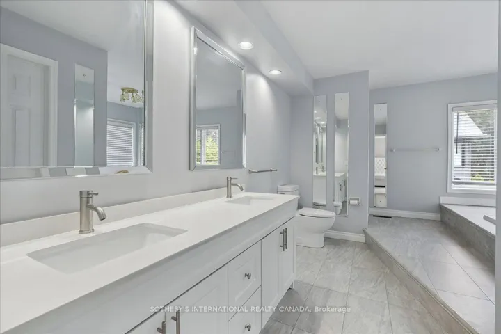 +"PublicRemarks": "Welcome to this stately 4+1 bedroom executive residence nestled on a quiet, tree-lined court south of Lakeshore Road in one of Oakvilles most prestigious neighbourhoods. Situated on a spectacular, pool-sized lot just steps from the lake and scenic shoreline trails, this home offers over 4,780 sq ft. of beautifully finished living space. Grand foyer with a sweeping hardwood staircase and soaring ceiling sets the tone, leading to an elegant living room with a fireplace and a formal dining room ideal for entertaining. The heart of the home features a chefs kitchen with rich wood cabinetry, granite countertops, stainless steel appliances, and a centre island. The kitchen opens to the breakfast area and a spacious family room with a stunning brick fireplace wall and walkouts to the private backyard and patio. A convenient wet bar further enhances the entertaining space. New wide-plank hardwood flooring on the main level and plush broadloom upstairs complement the freshly updated bathrooms. The upper-level primary retreat features a private balcony, walk-in closet, and a spa-inspired ensuite. Three additional generously sized bedrooms and an updated 4-piece bath complete this level. The finished basement includes a recreation room, a media room with wood-burning fireplace, a fifth bedroom, a full bathroom, and a sauna ideal for guests or multigenerational living. Enjoy the best of Oakville living steps to Sheldon Creek Park, shoreline paths, and minutes to vibrant Bronte Village shops, cafés, and the Bronte GO. Easy access to QEW, 30 minutes to Pearson or downtown Toronto."
