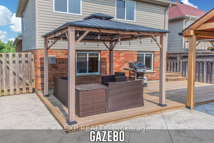 +"PublicRemarks": "Welcome to 144 Gooseberry Street, a well-maintained 3-level backsplit nestled in peaceful Montgomery Village of Orangeville fronting onto greenspace. This inviting 2-bedroom plus den home features a 1.5-car garage with kitchen access, a private driveway (repaved in 2022) with space for 2 vehicles, and a patterned concrete walkway with updated front steps leading to a charming front patio perfect for relaxing outdoors. The foyer welcomes you with ceramic flooring and a double closet, flowing into the open-concept eat-in kitchen with ample cabinetry, breakfast bar, microwave nook, double sink, and stainless steel appliances. A sliding door provides easy access to the backyard. Vaulted ceilings enhance the kitchen's eat-in space and adjoining dining room, which offers bright windows and laminate flooring, overlooking the spacious lower-level living room. The living area features large windows, a corner gas fireplace, laminate flooring, and a 3-piece bathroom with a walk-in shower. The upper level hosts a generous primary bedroom with a walk-in closet and access to a 4-piece semi-ensuite bath featuring a corner soaker tub and a 2019-updated walk-in shower. The second bedroom includes a double closet. The partially finished basement adds a flexible office area, laundry space with washer, dryer, and laundry sink, plus storage and utility access. The fully fenced backyard is ideal for entertaining with a deck, patterned concrete patio, and a garden shed featuring a built-in bar. Additional features include: Nest thermostat, rough-in central vac, and garage door opener."