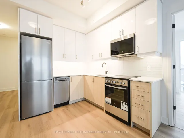 +"PublicRemarks": "Spacious west facing 1 bedroom suite with unobstructed views, an exceptional layout, and over 750 sqft of living area. Featuring a large modern kitchen with stainless steel appliances, expansive countertops, and a generous breakfast bar perfect for dining and entertaining. The open-concept living area is bright and inviting with large windows and plenty of natural light. The oversized bedroom easily accommodates a King bed, includes a large closet with built-in shelving, and a custom built-in makeup area with wardrobe, display shelving, and desk. Enjoy a stylish bathroom with large glass shower and ample counter space. Conveniently located close to restaurants, supermarkets, Eglinton GO, TTC, Kennedy Station, New Eglinton Crosstown LRT, STC. Includes 1 parking space and 1 locker for added convenience. A great opportunity for first-time buyers, small families, or down-sizers. Don't miss this chance to call it your home!"