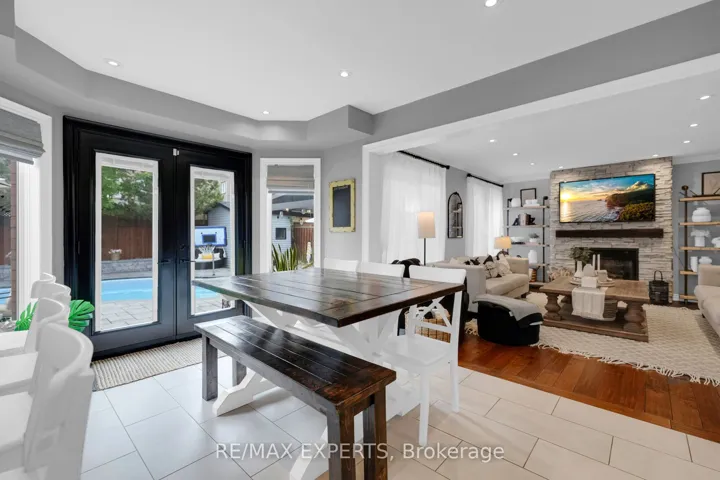 +"PublicRemarks": "Welcome to this Stunning 4-bed, 4-bath home in one of Georgetown's most sought-after neighborhoods, offering over 2,800 sq ft of fully upgraded living space. Inside, enjoy fresh designer paint, custom wainscoting, crown moulding, new lighting, and a completely renovated chef's kitchen with quartz counters, coffee bar, tile backsplash, pot lights, and premium appliances. The family room features custom built-ins and fireplace, while all bathrooms have been fully updated with quartz, designer tile, and modern fixtures. The finished basement includes a guest room with barn doors, electric fireplace, wet bar, spa-like bathroom, and custom laundry room. Fully renovated in 2022 the backyard oasis boasts a| saltwater pool with new liner and pump, waterfall jets, cabana, gas BBQ hookup, basketball net, and immaculate landscaping."