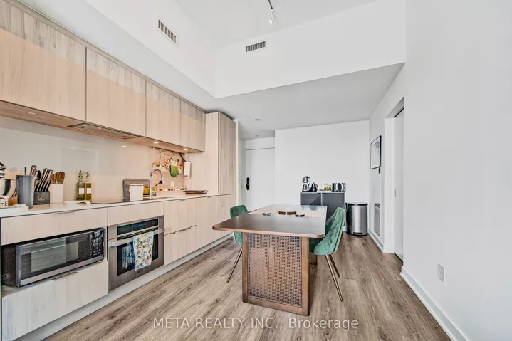 +"PublicRemarks": "This bright and spacious 1-bedroom plus large den suite is thoughtfully designed for modern downtown living. With 9-foot ceilings, wide laminate flooring, and a contemporary kitchen featuring custom cabinetry and quartz countertops, the home combines style and function. The versatile den can serve as a home office, guest room, or nursery, adapting easily to your needs.Step out onto your private balcony overlooking landscaped gardens, a quiet courtyard, and the outdoor poolyour personal retreat in the city. Residents enjoy exceptional amenities, including a 24-hour concierge, rooftop terrace with pool and BBQ area, fitness center, yoga studio, party and games rooms, theatre, and study lounge with outdoor terrace.Located in Torontos vibrant Fashion District, just steps to King West dining, the Financial District, and multiple TTC lines, this suite offers both convenience and strong investment potential."